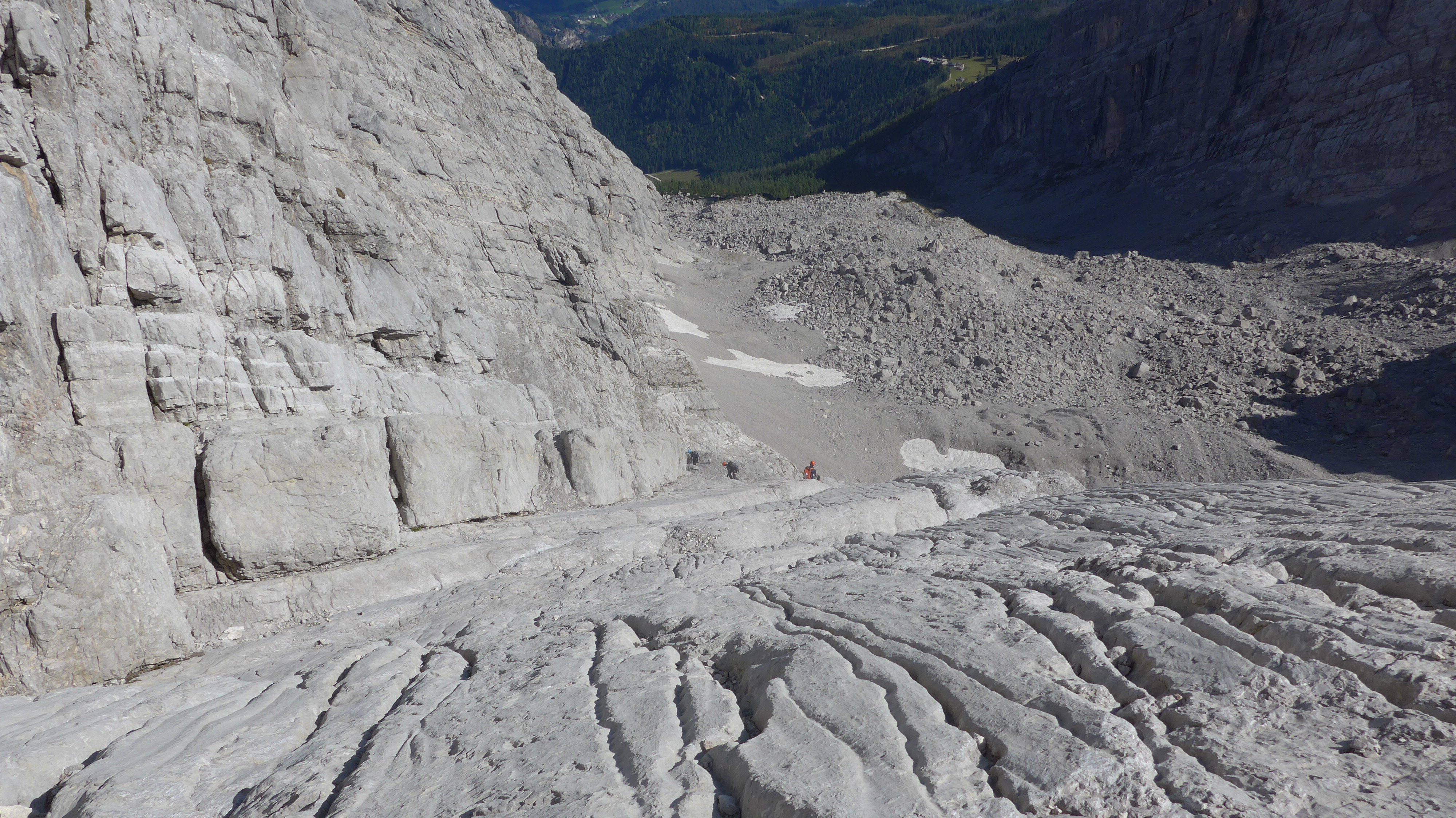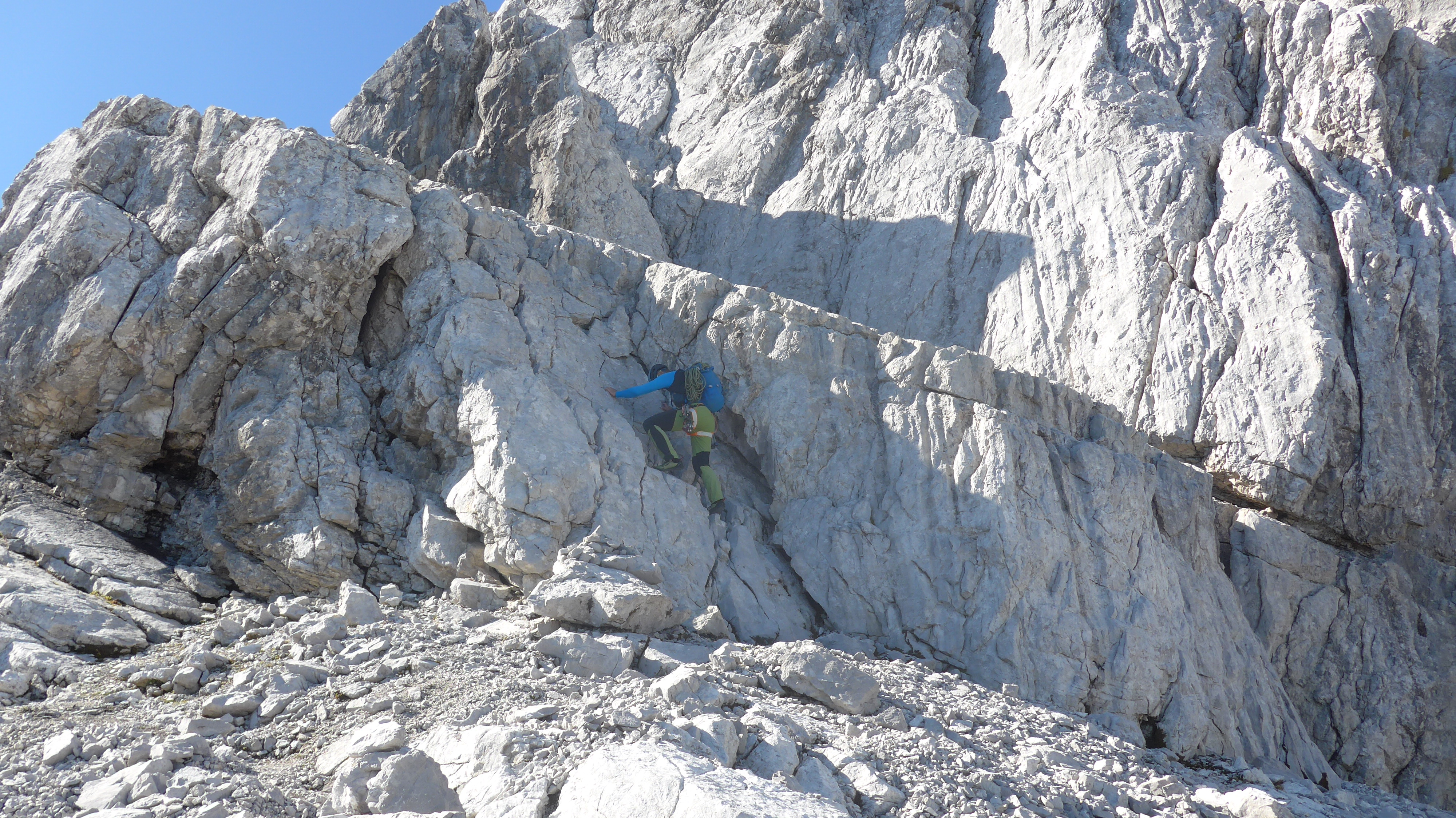 Gefahreneinschätzung: Steinschlag - vor allem in der Einstiegsrinne. Absturzgefahr. Gutes Orientierungsvermögen erforderlich ( vereinzelte Steinmännchen helfen - nicht immer) Der Klettersteig im Abstieg ist sehr abgespeckt!