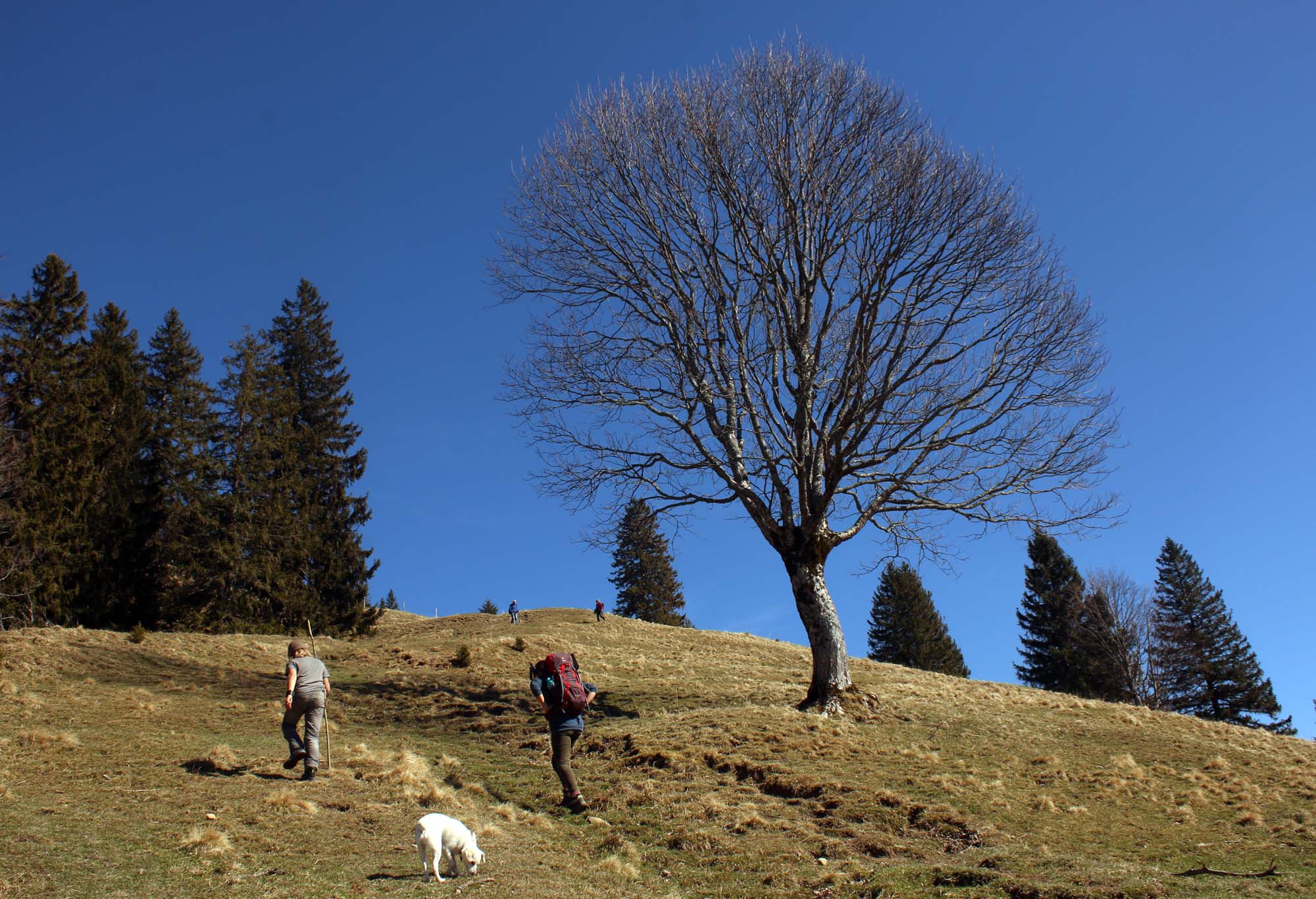 Tourenverhältnisse: Der südseitige Anstieg von Kappell ist komplett schneefrei. Zudem ist es kaum matschig. Der steile Nordhang ist zwar schneebedeckt, aber auch beim Übergang zum Hinteren Hörnle kommt man kaum mit Schnee in Kontakt.