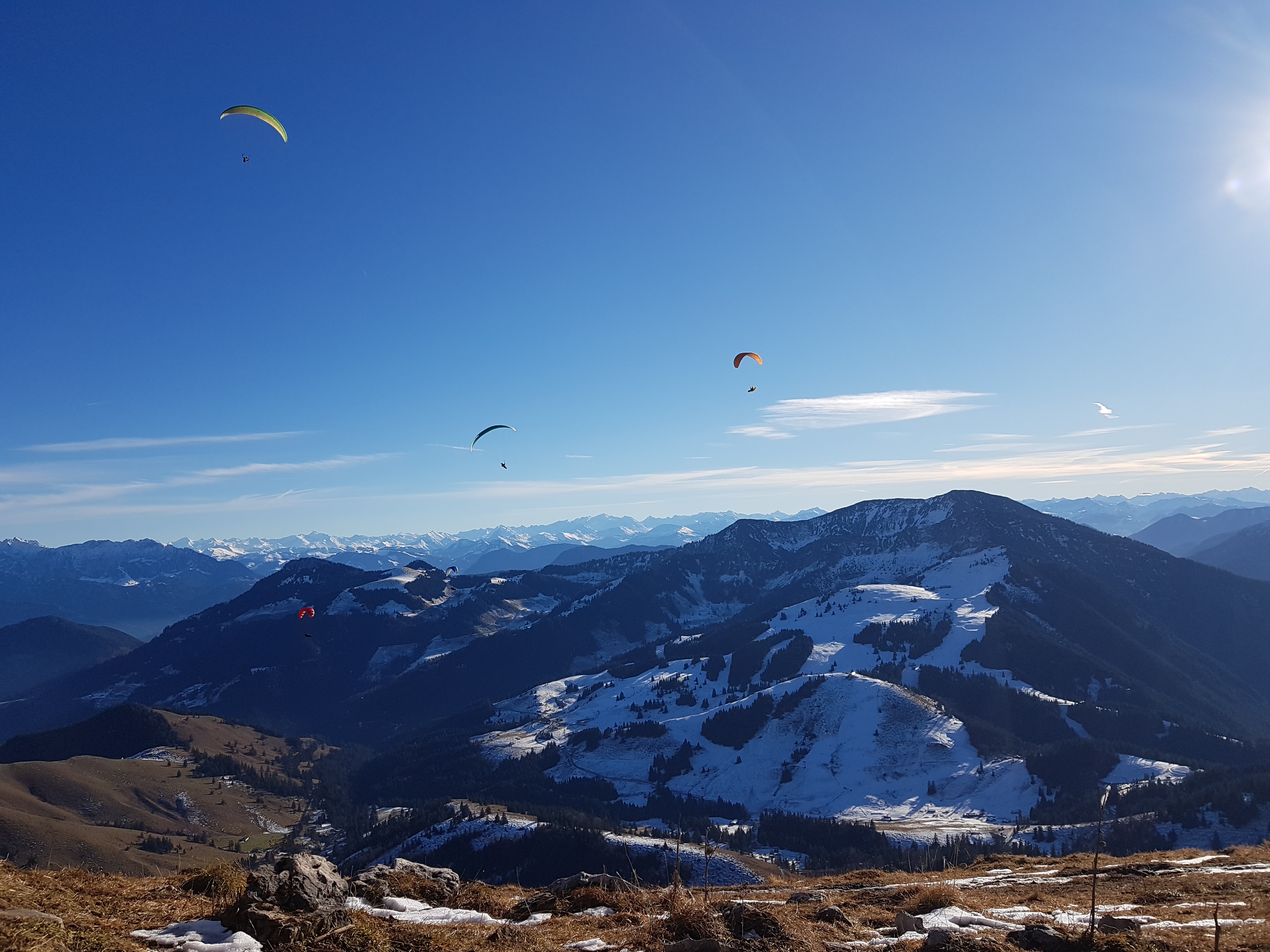 Tourenverhältnisse: Nur noch wenig Schnee. Der Steig im Wald (rechts an der Gabelung nach der Lacheralm), der direkt unterhalb/südlich des Gleitschirmflieger-Startplatzes im Sattel zwischen Käserwand und Wildalpjoch hoch geht war sogar komplett schneefrei, im oberen Hangbereich allerdings unheimlich baatzig im letzten Abschnitt. Gefühlt hat man den halben Hang bei jedem Tritt mitgenommen und ist dadurch ordentlich gerutscht. Oben am Grat dann gemisch, mal Schnee, mal kein Schnee. Die letzten Meter des nördlichen Aufstiegs zur Käserwand waren etwas vereist bzw. die Felsen hatten z.T. eine gefrorene Wasserschicht drüber. Am Grat westlich des Wildalpjochs (zur Seewand) sind in jedem Fall Grödeln empfehlenswert, da auch hier stellenweise eisig.