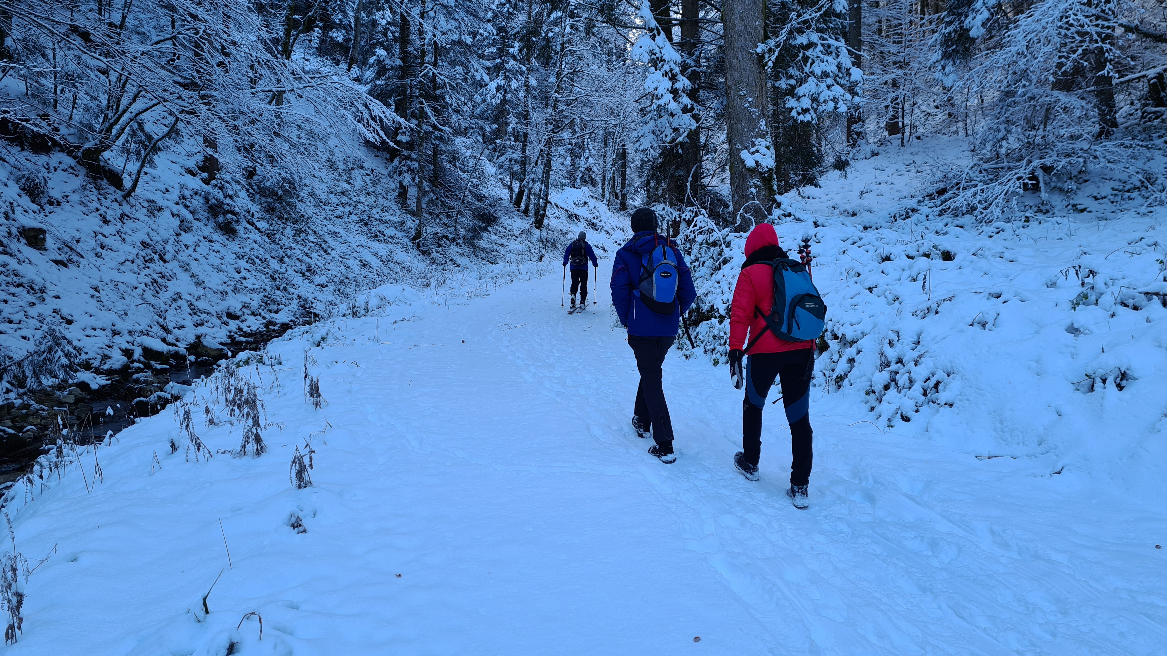 Das hat natürlich seinen Grund: Am Ausgangspunkt hat es knapp 10 cm - oben insg. 25 bis 30 cm. Die Neuschneemenge ist unerheblich.