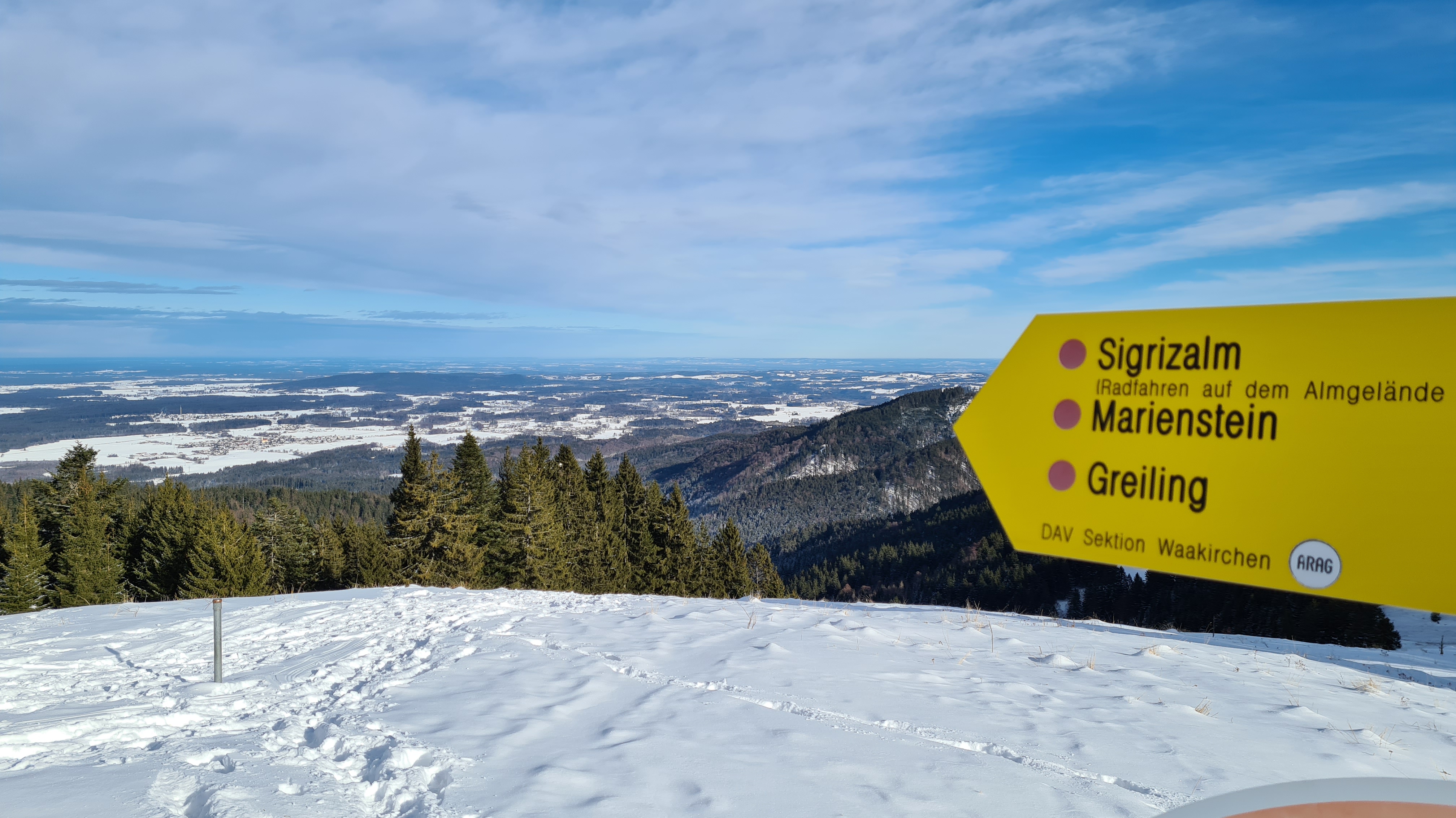 Lohnt es überhaupt mit Ski zu gehen??? Ich wurde belächelt - zumindest am Ausgangspunkt - und ich habe auch selbst damit gerechnet, dass ich das meiste wieder runtertragen muss. Letztendlich bin ich vom Gipfelkreuz bis zum Ausgangspunkt alles gefahren. Am Gipfelhang bin ich nur wenig ins "Gelände", ich habe hauptsächlich die zusammengetrampelte sehr breite Fußgängerspur benutzt, da ging es richtig gut. Dann die Forststraße. Die kurze Route, die ich beim Aufstieg genommen habe, nicht abfahren! Zum Aufstieg hat es genug Schnee, aber nicht zum runterfahren. Es gibt eine breite Forststraße, die erstaunlich gut eingeschneit war (letztes Bild) und hier konnte man richtig gut runterschwingen. Von der Sigrizaqlm kommend, einfach geradeaus weiter, also auf der breiten Straße bleiben, ein paar Meter ansteigend, dann geht es super zum Fahren!