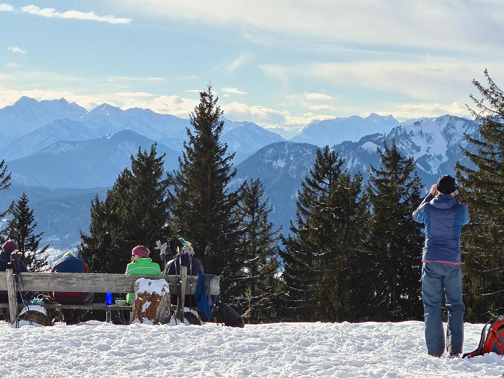 Tourenverhältnisse: Für etwas mehr Skitouren-Feeling ging es heute mal auf eine skifahrerisch unattraktive Route. Klingt paradox, is aber so: bei mir kam heute, trotz der eingeschränkten Abfahrtsmöglichkeiten, mehr Skitourengehfühl auf als am völlig überfüllten Spitzing mit Kunstschneepiste. Hier konnte man Naturschnee und Ruhe genießen; und wer Lust hat kann sogar noch spuren, es gibt noch nicht viele Skispuren....