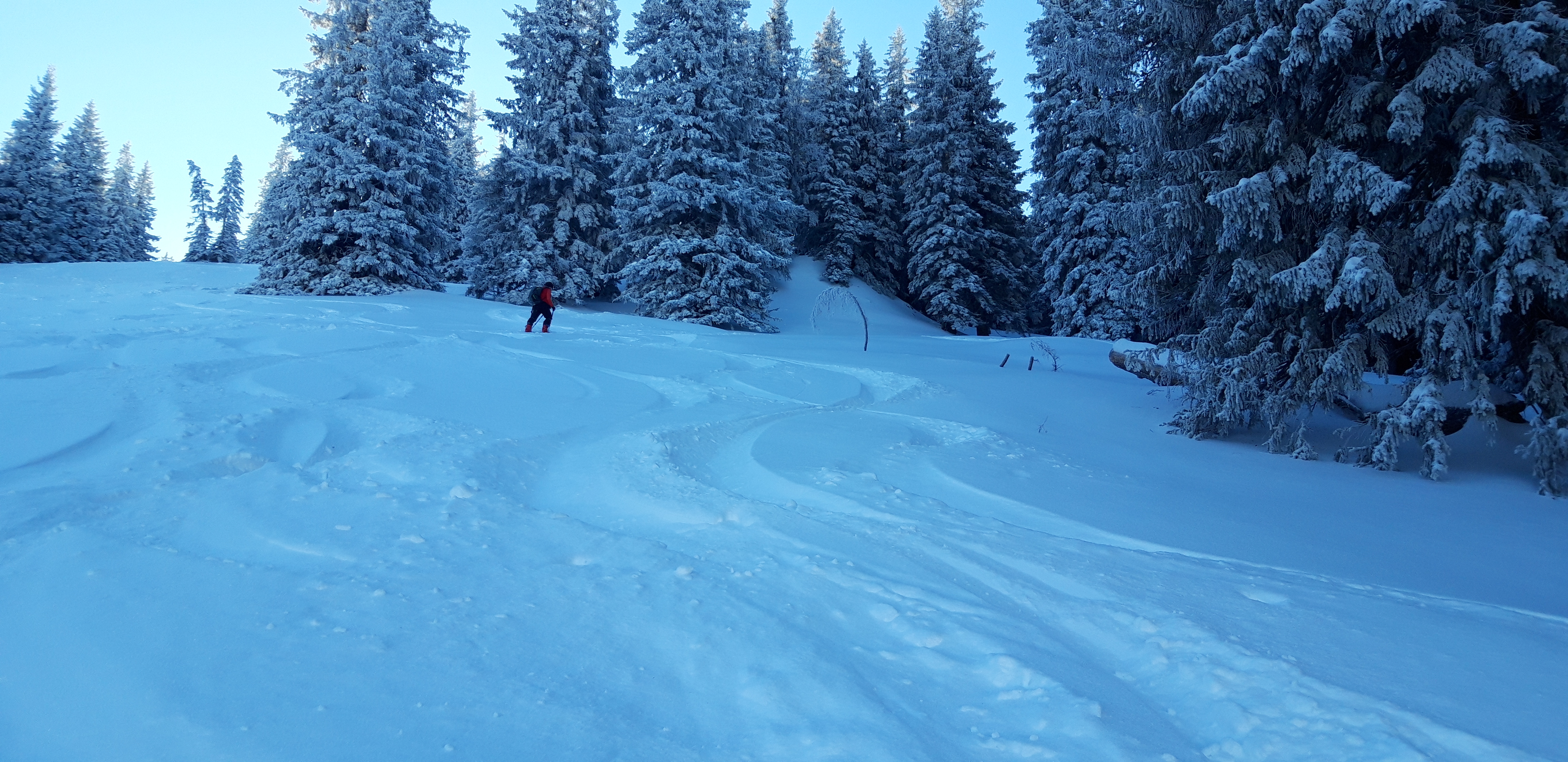 Tourenverhältnisse: Genialer Pulver, siehe Beitrag gestern. Ich schreibe heute nur, um auf die Lawinengefahr hinzuweisen. Auf der gestern von mir beschriebenen Reibn herrscht keine Gefahr, aber...