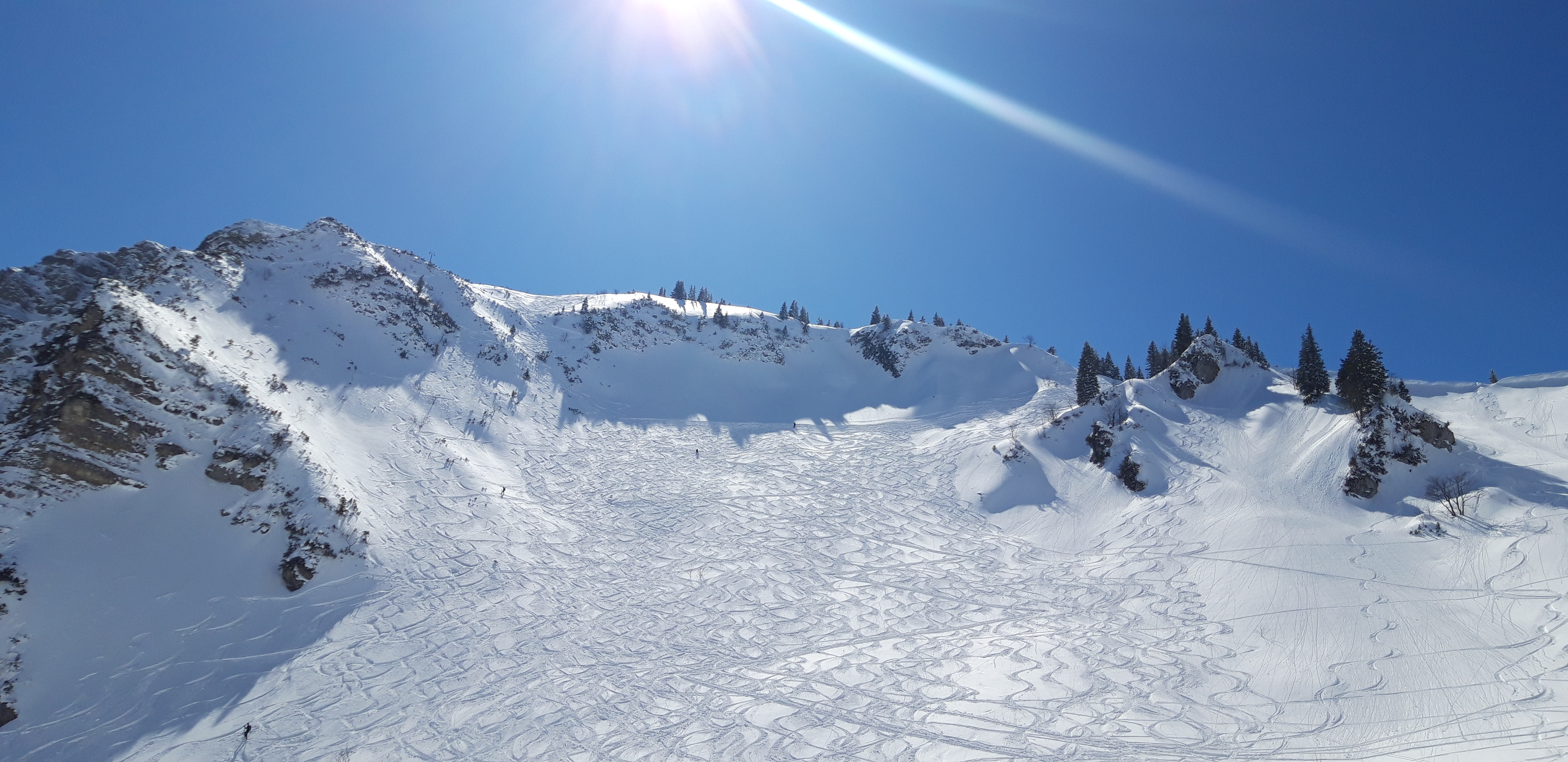 Prognose: Mit Pulver wird es wohl bald vorbei sein, aber mit richtigem Timing wird man noch einige Zeit ein Firnvergnügen erleben. Schnee ist genug da - nur ganz unten könnte es bald eine kurze Tragestrecke geben.