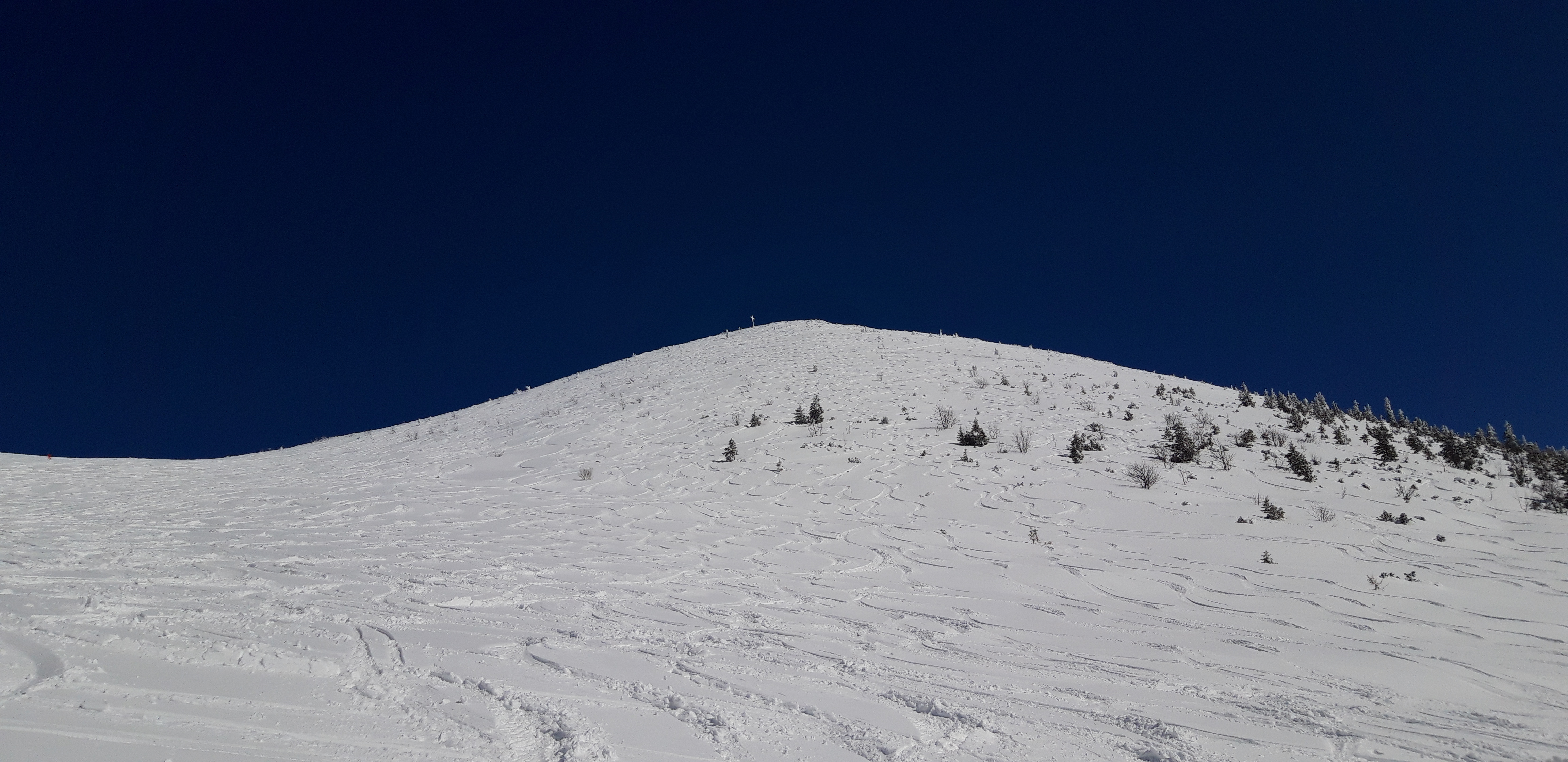 Gefahreneinschätzung: Geringe Lawinengefahr heute; im Laufe des Nachmittags zeigten sich aber die ersten Schneemäuler am Kamm zwischen Geigel- und Breitenstein. Die gängigen Abfahrten/Aufstiege sind aber nicht betroffen.