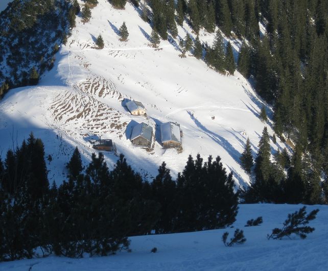 Am kritischten ist noch der Südhang an den Rauheckalmen, der schon viele Lücken aufweist. Hier besser Ski tragen oder ganz am Rand rechts bei den Bäumen bleiben. Alle anderen Hänge waren ohne Probleme bei guten Schnee zu befahren.