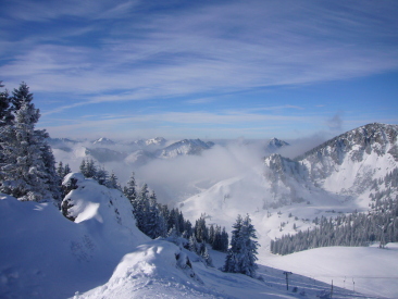 Tourenverhältnisse: Aufstieg über Schönfeldalm bis Rauhkopf bei ca. 5-10 cm Neuschne. Kein Liftbetrieb.