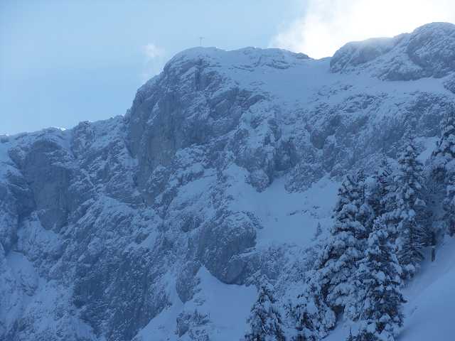 Gefahreneinschätzung: am Kochler Eck auf ca. 1500 m abgebrochen, Hanglage über 30° , Nordwestlage 40 cm Pulverschnee,