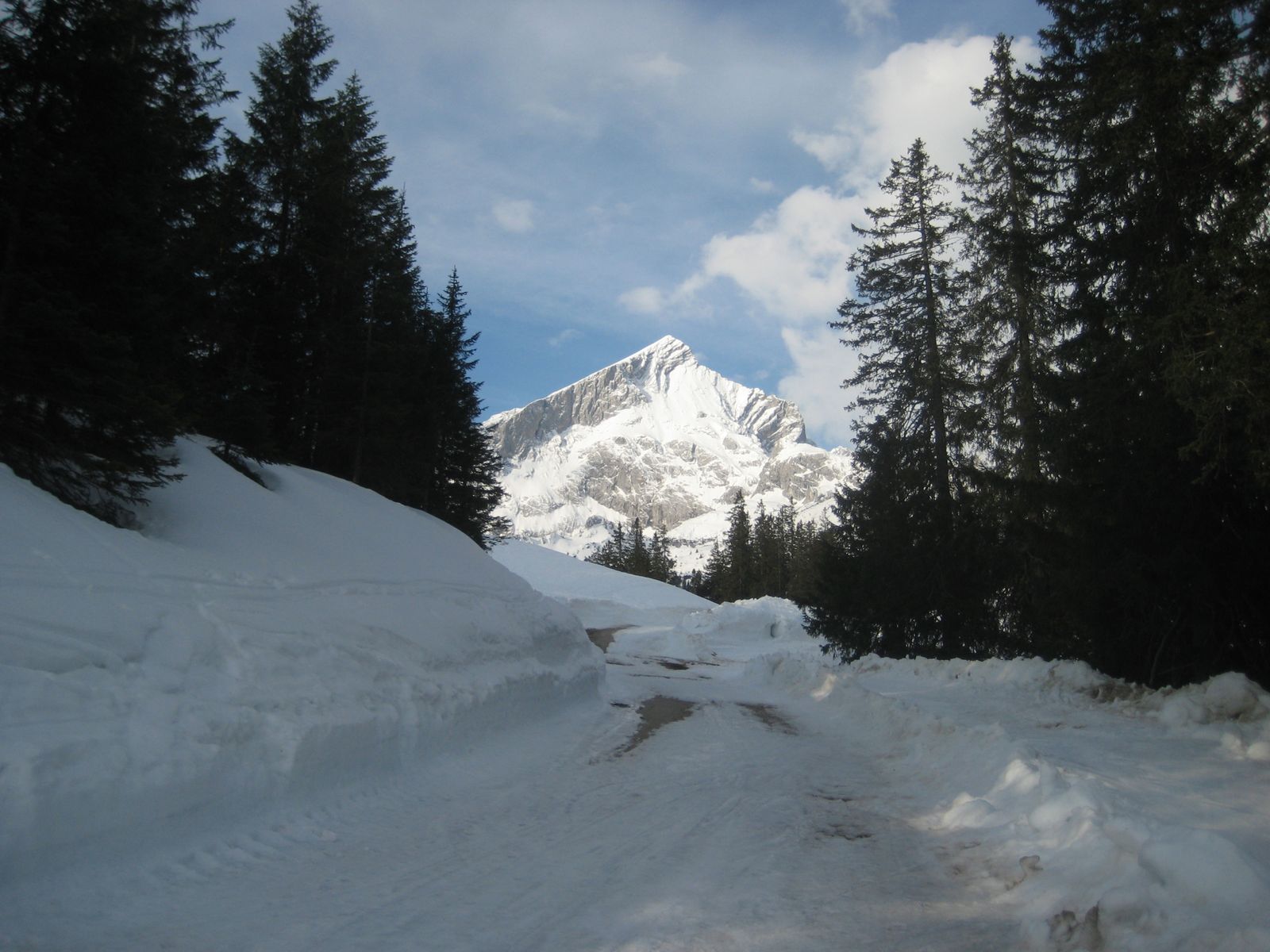 Schnee noch fast bis zum Parkplatz! Wird aber schnell weniger werden: