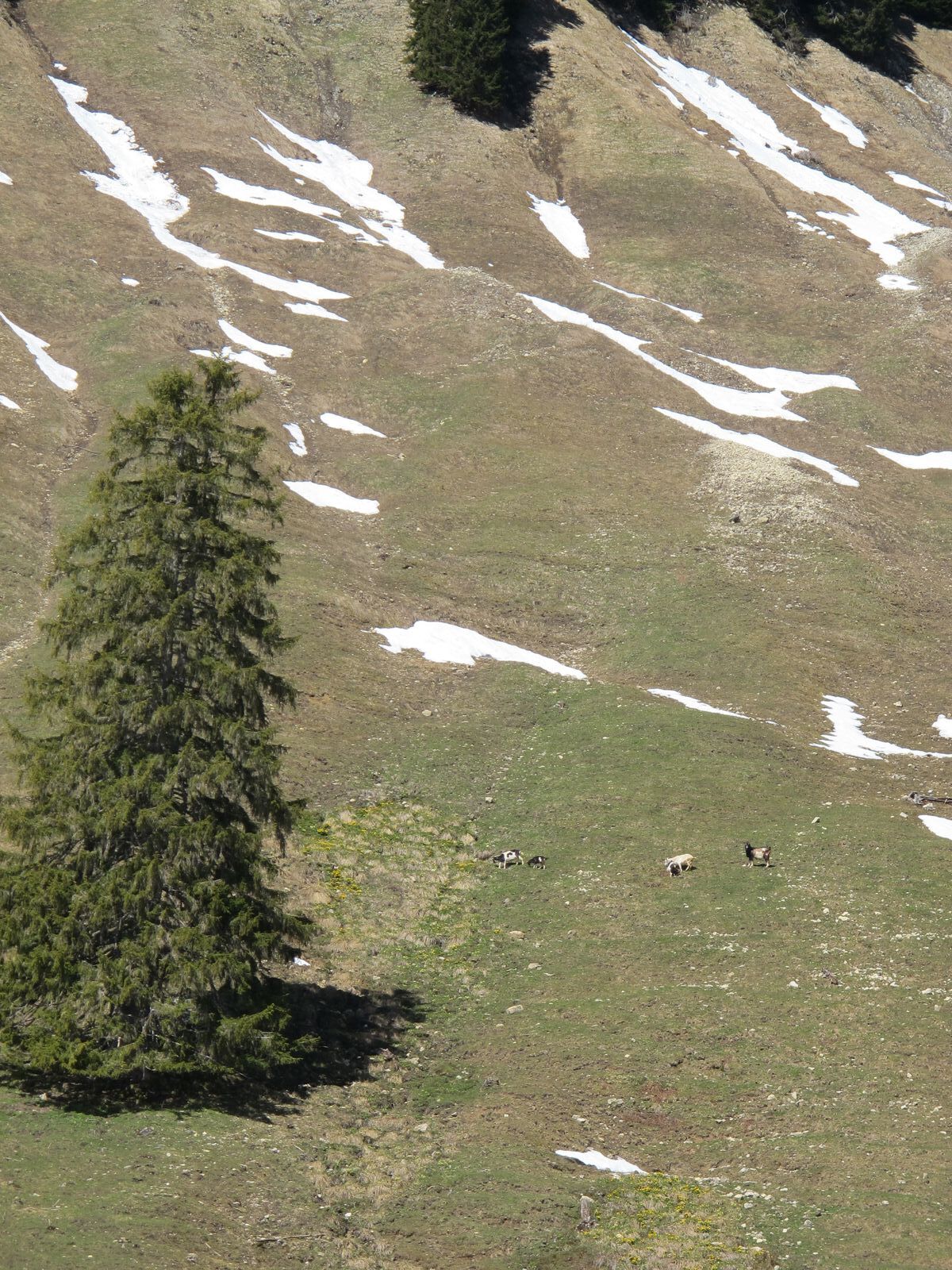 Eigentlich wollten wir was anderes machen, waren aber zu spät dran. Also Roßkopf über Dreitannenabfahrt( Ab Bergwachthütte Schnee, zwei kurze Tragestücke im Wald, sonst noch durchgehend Schnee.