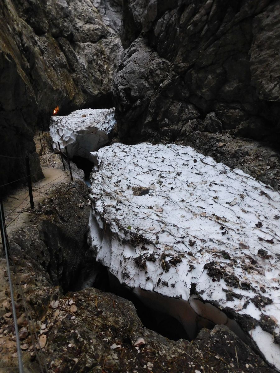 Große Schneepfropfen in der Höllentalklamm (Weg ist gut freigeräumt):