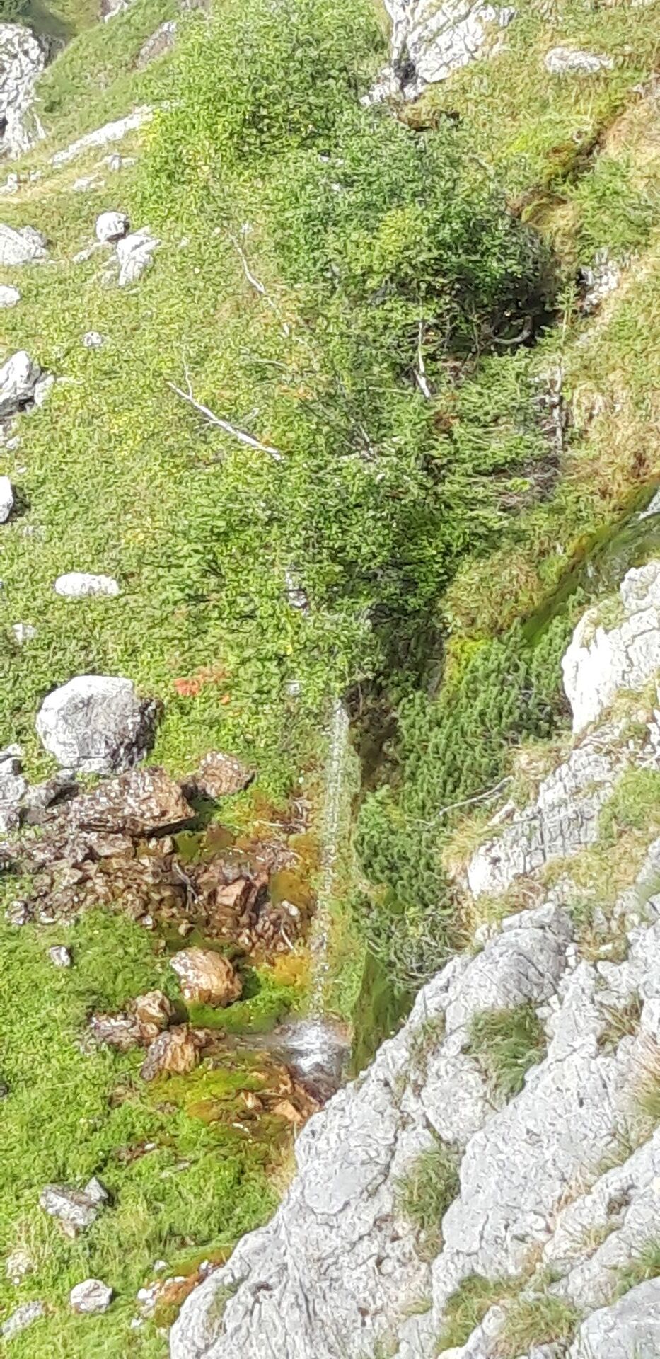 Hinweis: Natürlich kann man das Hahnkampl auch weglassen und beim Gramai Hochleger direkt ins Tal absteigen, aber davon würde ich abraten: 1. Verpasst man dann landschaftlich einiges. 2. Ist der direkte Weg teilweise unheimlich steil und unangenehm, weil da vor wenigen Jahren eine Art "Fahrstraße für Unimogs" angelegt wurde, der den alten (auch steilen, aber besser gehbaren Serpentinensteig) ersetzt hat. Keine Ahnung, wie man so was genehmigen kann - für mich auf jeden Fall der hässlichste Weg im Karwendel!