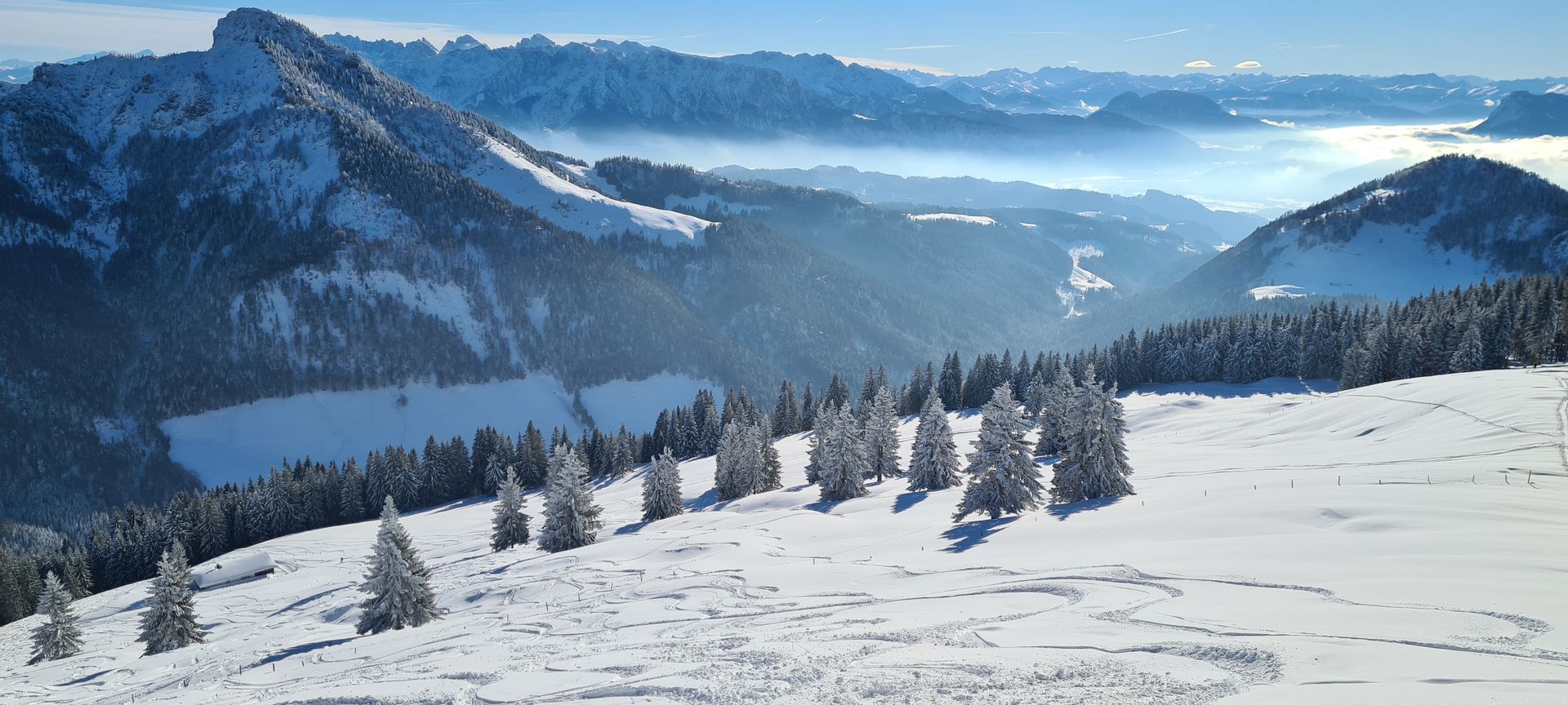 Verhältnisse: Die Route von der Wagner Alm durch den Wald im Aufstieg ausreichend Schnee und griffiger Pulver; zur Abfahrt taugt die Route eh nicht. Gipfelhang sehr gute Verhältnisse. Die Abfahrtsroute war perfekt bis zum Parkplatz.