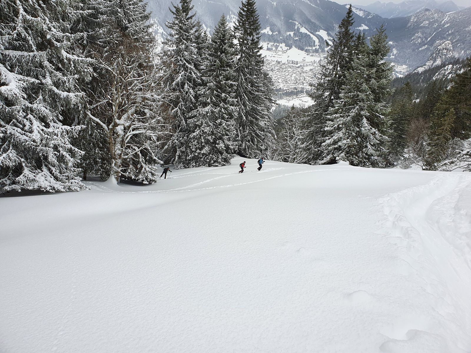 es soll ja in den Bergen weiter schneien, im Flachland als Regen. Klingt - wie ich heute beim Lawinenbericht sehe - nach deutlich höherer Stufe. Bis zur Querung würde ich den Hang aber als inzwischen eingefahrene Tiefschnee-Buckelpiste betrachten. Je nach Schneeart kommt da eher das Risiko von Baumbruch. Also auf jeden Fall umsichtig agieren.