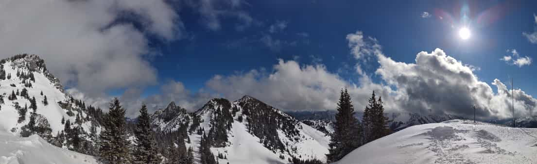 Ausgangspunkt Spitzingsee, über die Rodelbahn hoch zum Rotwandhaus (anfangs Tragestrecke). Im Gegensatz zu zwei Tagen vorher habe ich schnell gesehen, dass mir der Gipfelhang zur Rotwand nicht gefallen hat - teils komplett abgeblasen und teils stark eingeweht, hab ich dann bleiben lassen (und noch zwei offenbar nicht Einheimische davon abbringen können, die zu Fuß außer Stöcken keinerlei Winterausrüstung dabei hatten...).