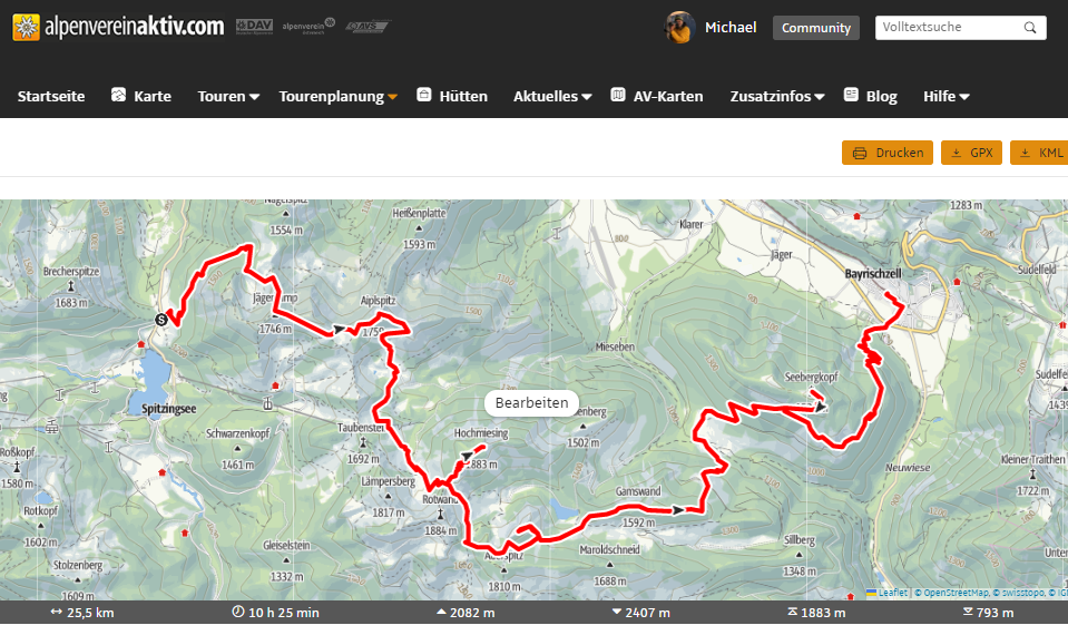 Der mit Bus & Bahn bestens erreichbare Spitzingsattel (bei uns war hin und zurück alles auf die Minute pünktlich) ist Ausgangspunkt einer tollen Gebirgsdurchquerung, bei der man mit Jägerkamp, Aiplspitz, Hochmiesing, Ruchenköpfe, Gamswand und Seebergkopf nicht weniger als sechs Gipfel mitnehmen kann. Genießer:innen teilen die Tour mit Übernachtung am Taubensteinhaus auf zwei Tage auf. Wer sich ein bisschen quälen möchte, unternimmt die tolle Durchquerung vom Spitzingsee zum Bhf. Bayrischzell an einem Tag (25, km, 2100 Hm).