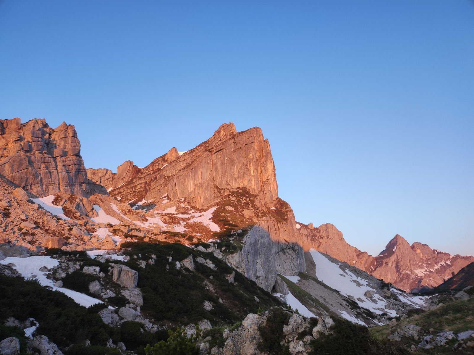 Nun folgte eine Biwak-Nacht im Angesicht der imposanten Nordwände des Rofan. Herrlich!