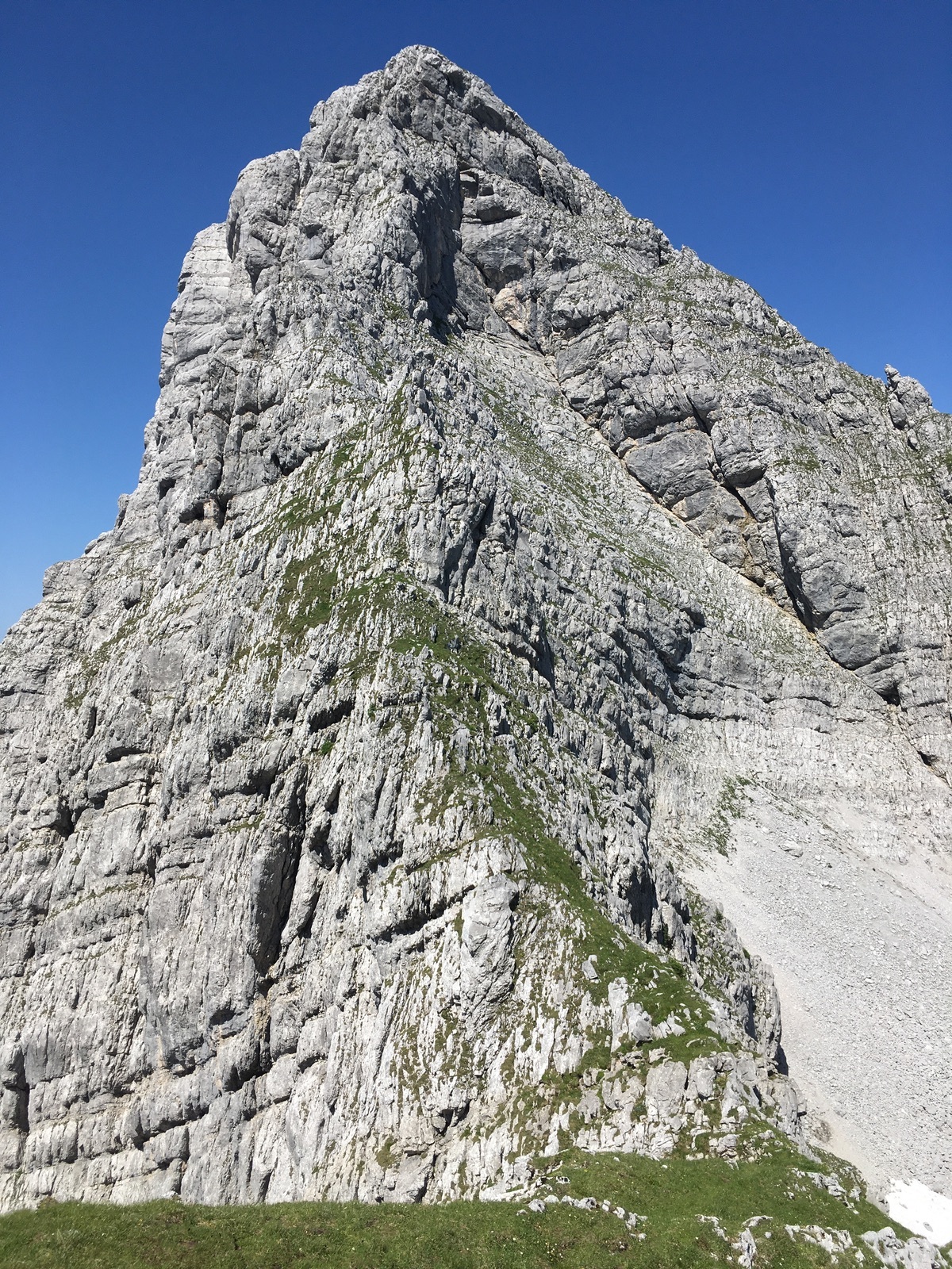 Information zur Wiederroute (Aufstieg zur Watzmann-Mittelspitze aus dem Watzmannkar): Es liegt auf dem ersten Band noch ein großes Schneefeld. Eventuell am linken Rand zu umgehen. Sonst braucht es möglicherweise Steigeisen. Auch weiter oben noch etwas Restschnee und auch beim Einstieg. Insgesamt dürfte es nochmals anspruchsvoller sein als auch schon. Eventuell besser noch einige Wochen warten, bis der Schnee ganz weg ist.
