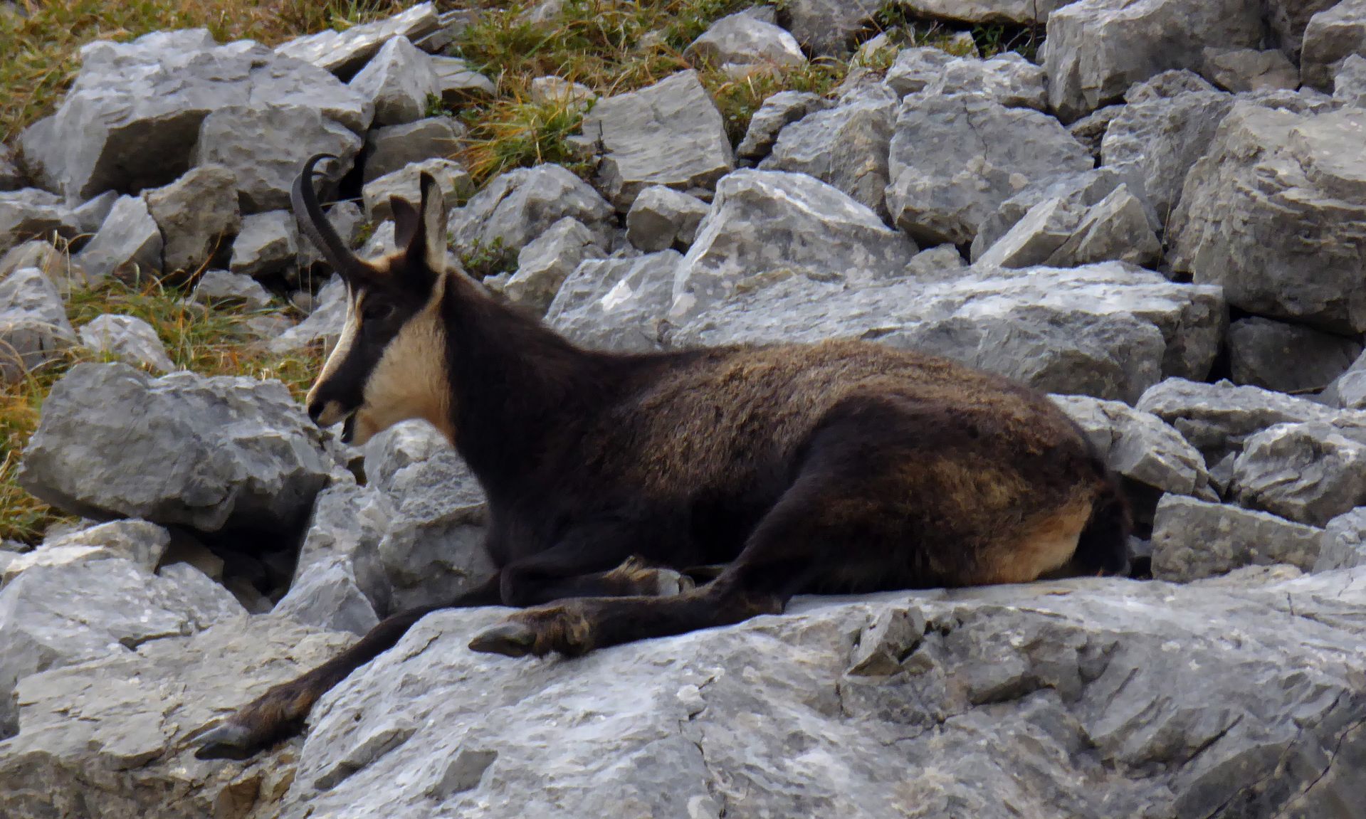 Der erste Schnee ist in den Bergen gefallen - natürlich zu wenig für die Steinskischrubber, aber zuviel zum Wandern? Es ist war heute ein bisschen eine Frage der Exposition: Nord- und schattseitig ist manches schon ordentlich angezuckert, das Gamsjoch indes erwies sich als perfekte Lösung, um nicht im Schneematsch herumstapfen zu müssen: Der Direktanstieg von der Eng durchs Gumpenkar ist von der Morgensonne beschienen, ab dem Joch iust auch ein bisschen Südseite dabei - alles trocken und schneefrei bis zum Gipfel. Doch direkt hinterm Gipfelkreuz hielt sich dann der Schnee (perfekt, um das Gipfelbier zu kühlen).