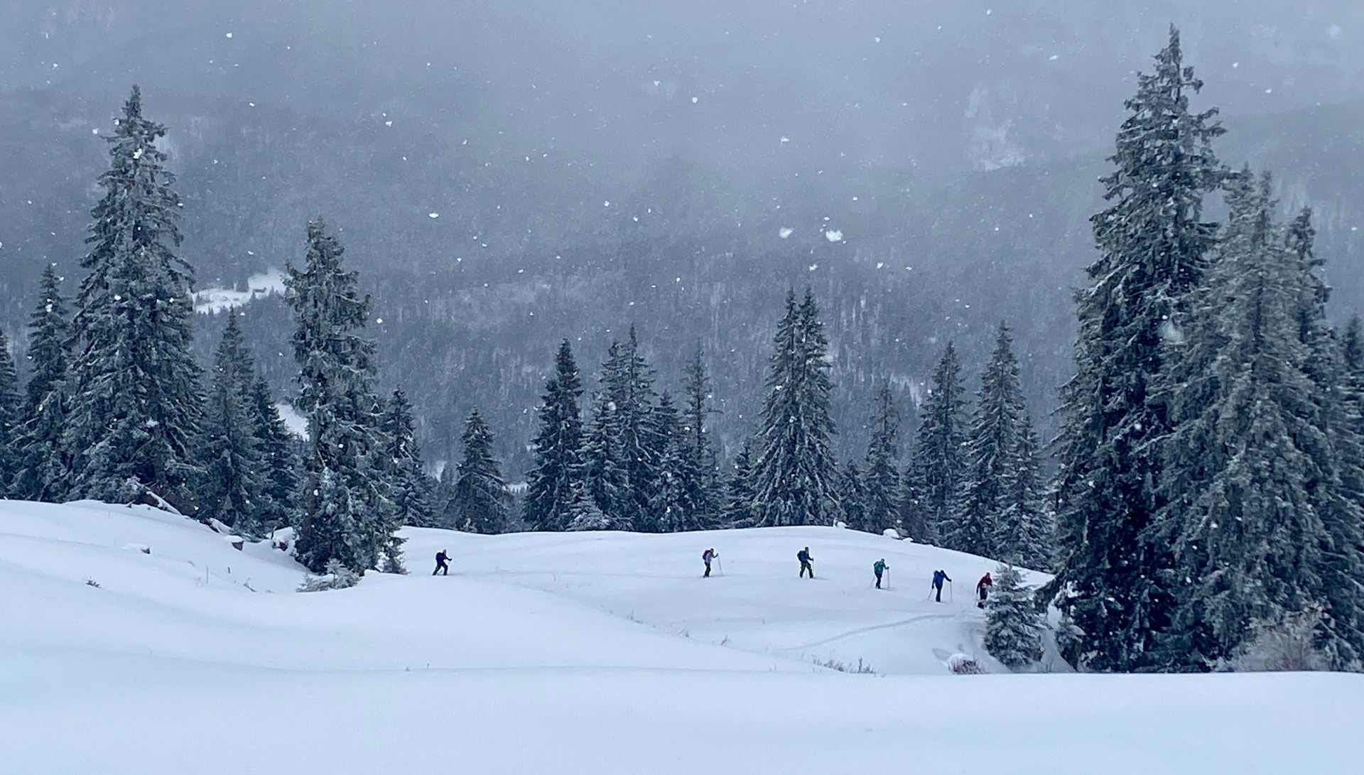 Das Brauneck geht ja immer, heißt es? Für den Moment stimmt das, wenn man mit Tourenski unterwegs ist: bis zu 40 cm Neuschnee am Berg, auch in Tallagen genug Unterlage - heute kein Steinkontakt.