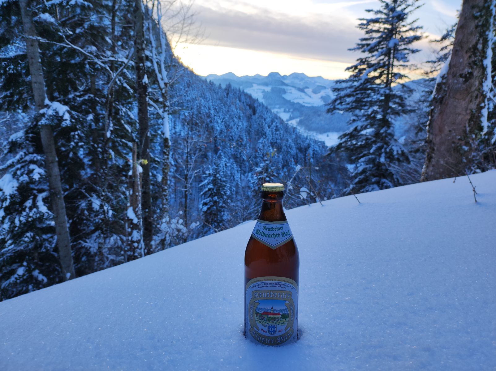10: Des rundet den Tag ab! Es is zwar no ned Weihnachten, aber der Reutberger Weihnachtsbock hod ois, wos da Tourengeher braucht! Vor ollm a bisserl mehra PS wia a normals Bier - do gfriert er a ned glei, wanns koid ist!