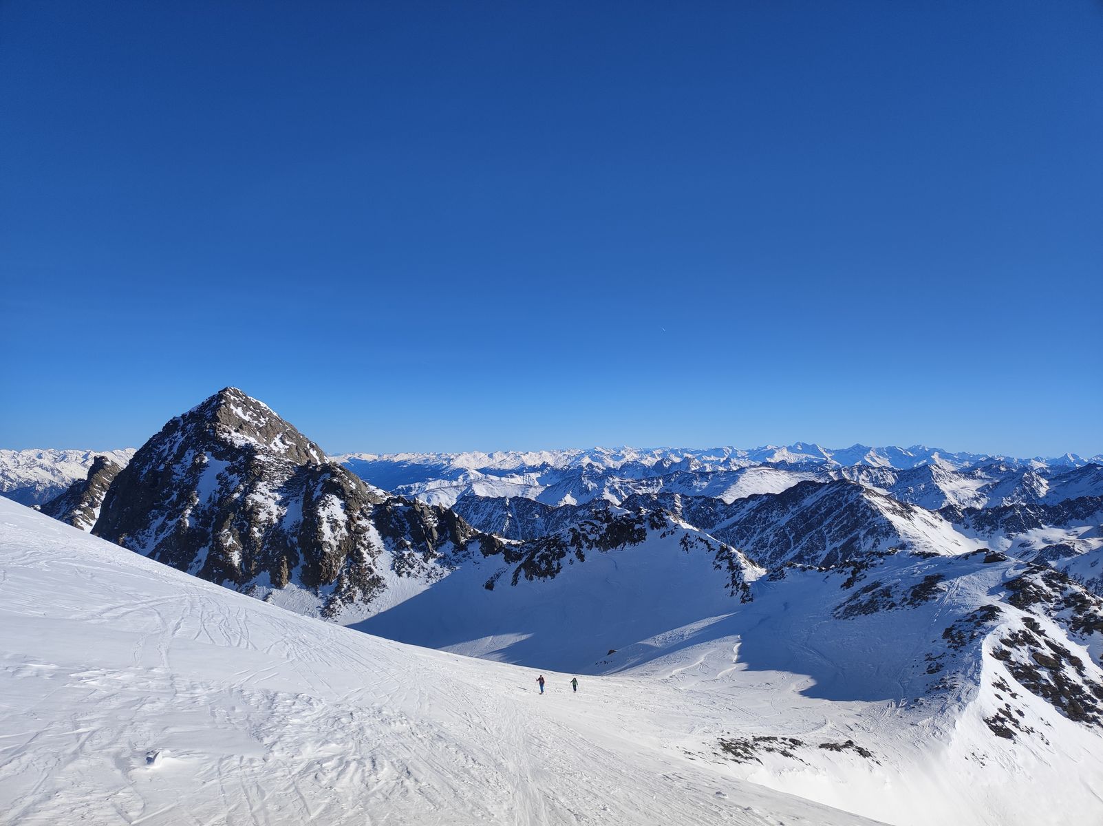Heute bin ich sozusagen zum "Drüberstreuen" nach dem schönen Wochenende noch von Haggen aus auf den Zwieselbacher. Natürlich waren da am Wochenende schon etliche oben, aber dennoch gute Bedingungen in der Abfahrt; kein Harsch. Bis kurz nach der Unteren Zwing eher wenig, aber gut ausreichend Schnee, weiter oben deutlich mehr. Gipfelhang theoretisch mit Skiern machbar, aber weil schon so viele die Spur zertreten haben, bin ich auch mit Skiern am Rucksack hoch.