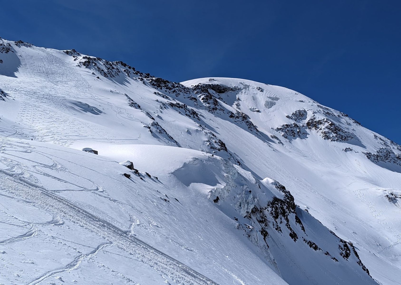 Der Nordhang ganz im Osten (also nicht zu verwechseln mit der Nordwand, die auch befahren wurde) hatte guten Powder.