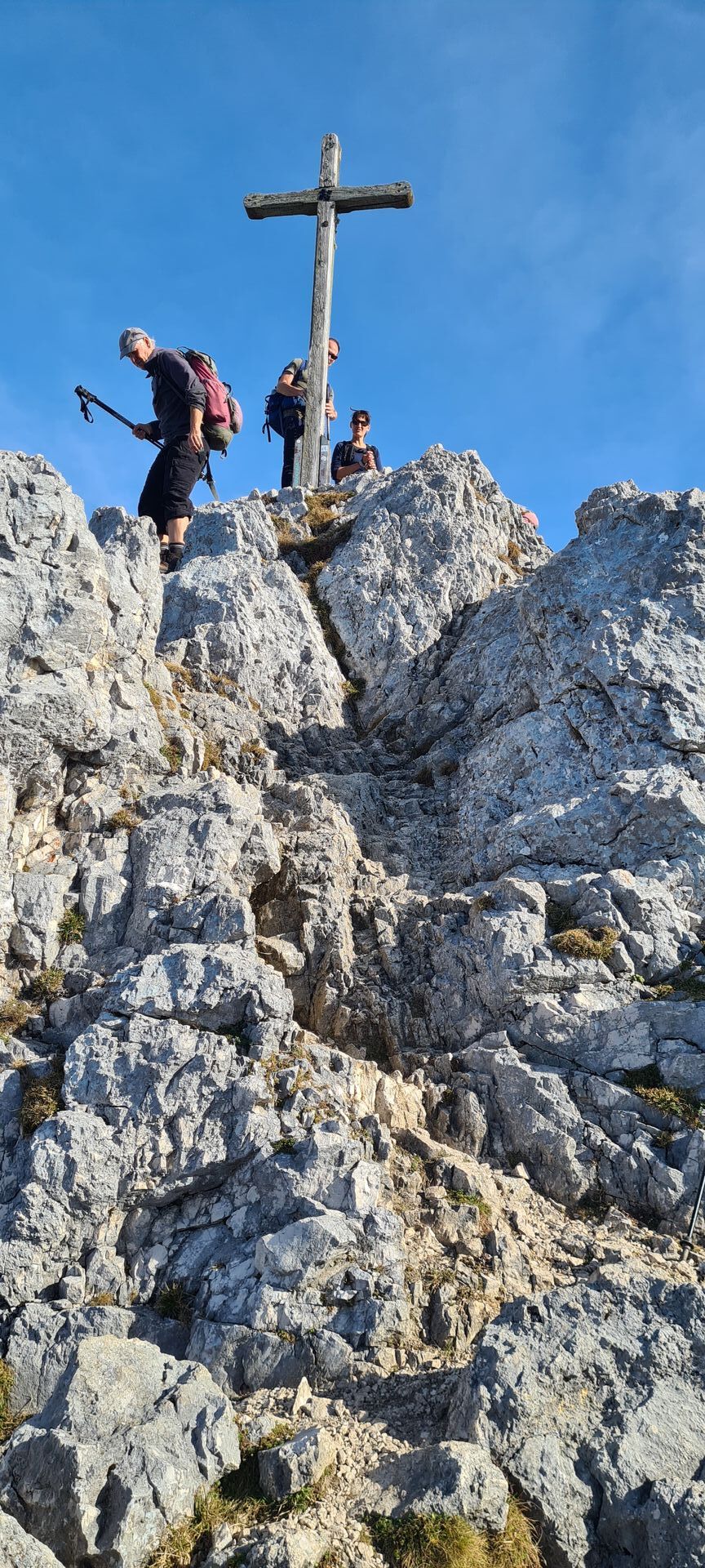 Apropos Gänsehaut: Um 10 Uhr am Parkplatz nur 3 Grad, es war schon ganz schön kalt ohne Sonne, oben dann T-Shirt-Wetter, am Gipfel jedoch kalter Wind und Mütze und Anorak.