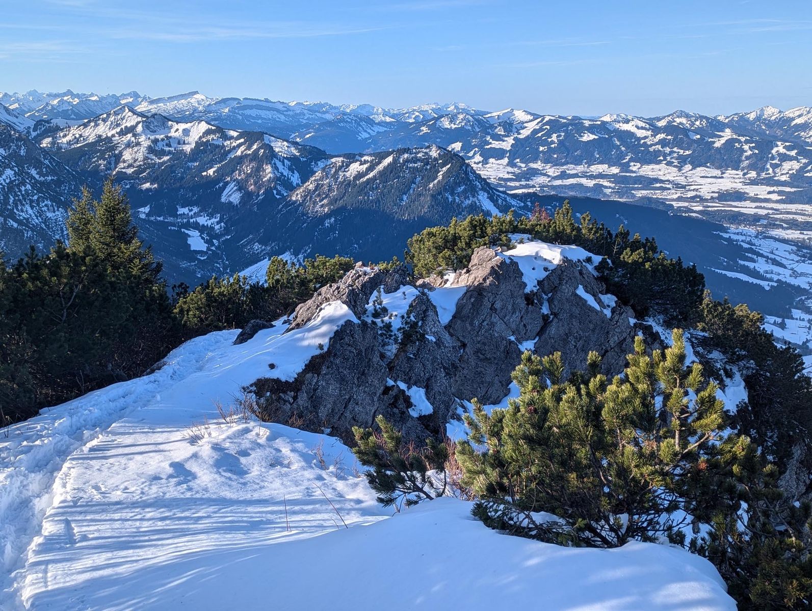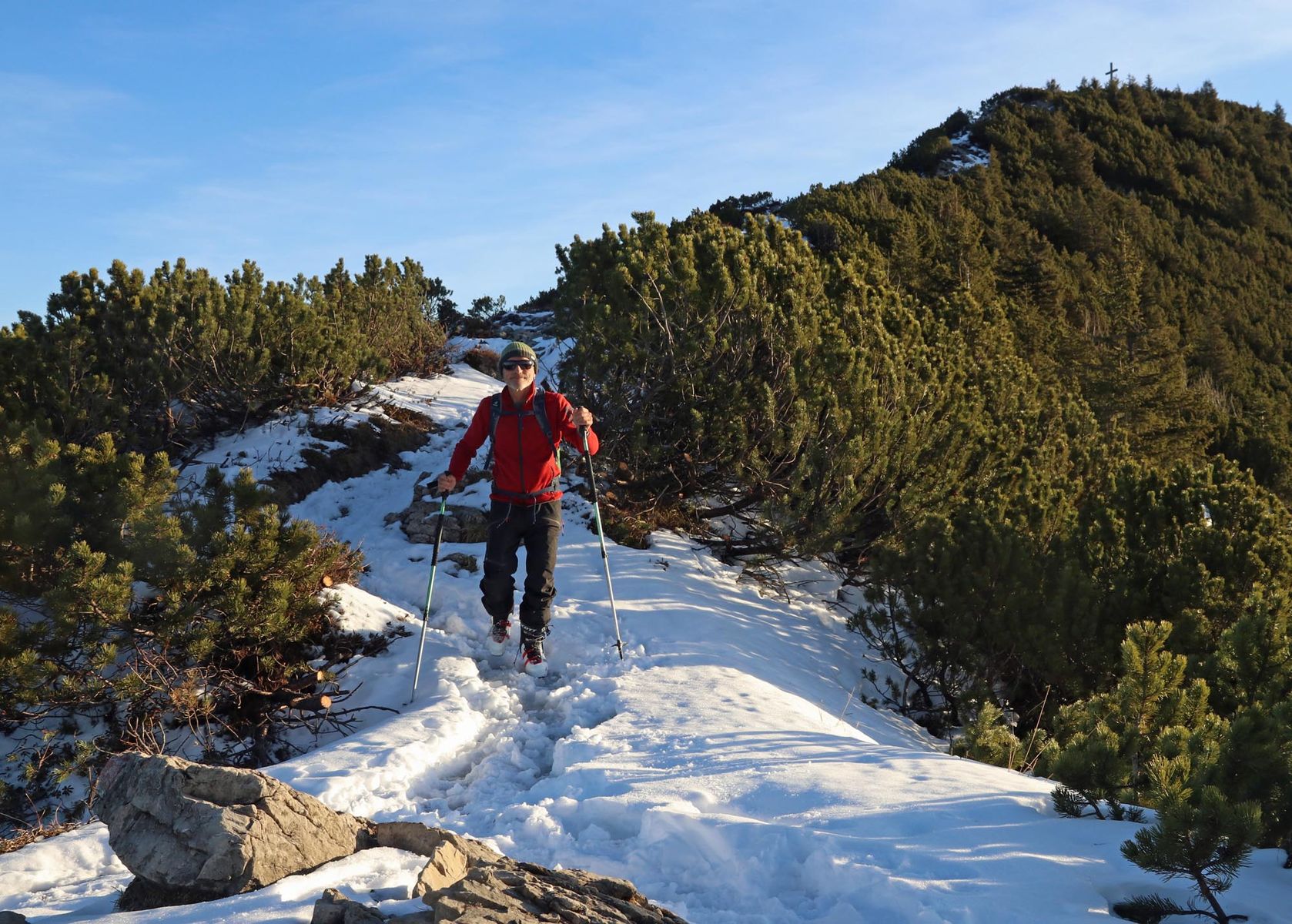 Der Gipfelanstieg über den Sommerweg ist gespurt und teils schneefrei.