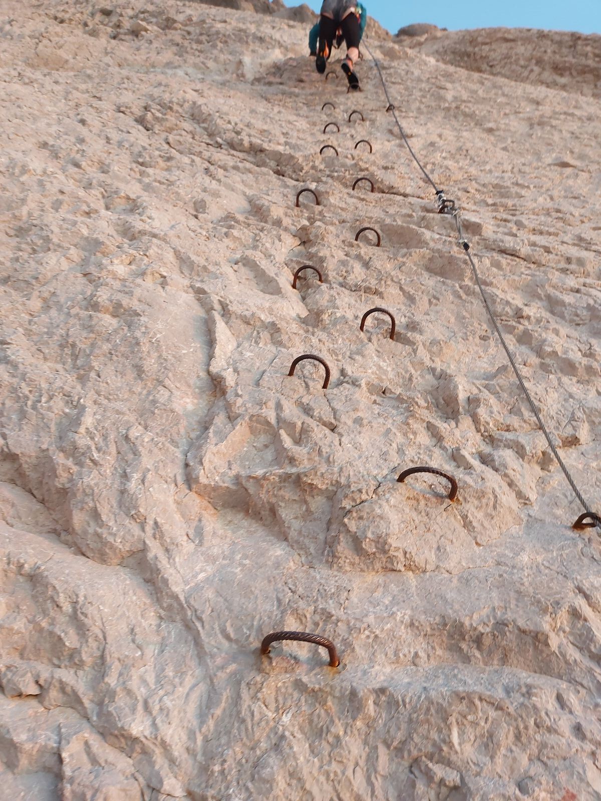 Insgesamt waren es 37.7km, und 2350 hm. Bruttozeit war 13:20, wobei wir uns nicht wirklich beeilt hatten. Ein Klettersteigset kann nützlich sein. Ich hatte es bei der Leiter, Brett, und kurz nach dem Einstieg in den oberen Klettersteig benutzt da ich dem Eisen dass durch X-tausend Leute pro Jahr abgenutzt wird nicht unbedingt vertraue.