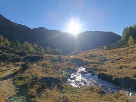 Mit dem Abstieg von der Edelrauthütte verlässt man die Zillertaler Alpen und taucht ein in die von herrlichen Lärchenwäldern und bis weit hinaufreichende Steilwiesen geprägten Pfunderer Berge.