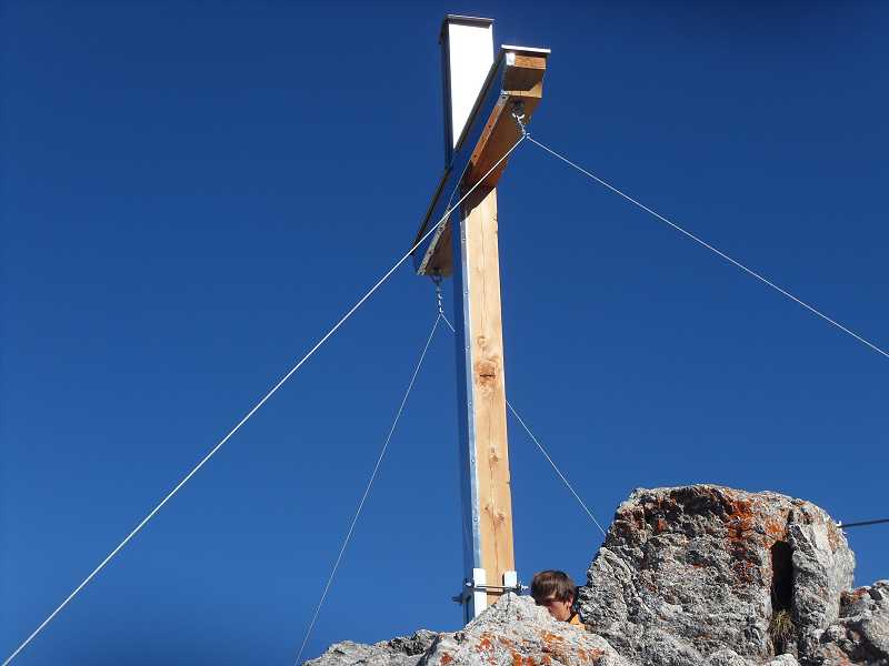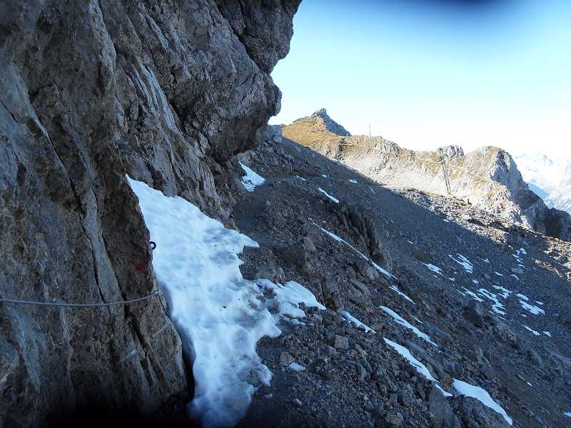 Tourenverhältnisse: von der Dammkarhütte bis zur Bergwachthütte sehr starker Wind, ab der Dammkarhütte bis zum Gipfel im Schatten gefroren und rutschig, die Schneereste stören nicht,