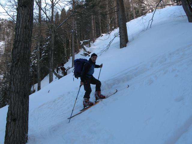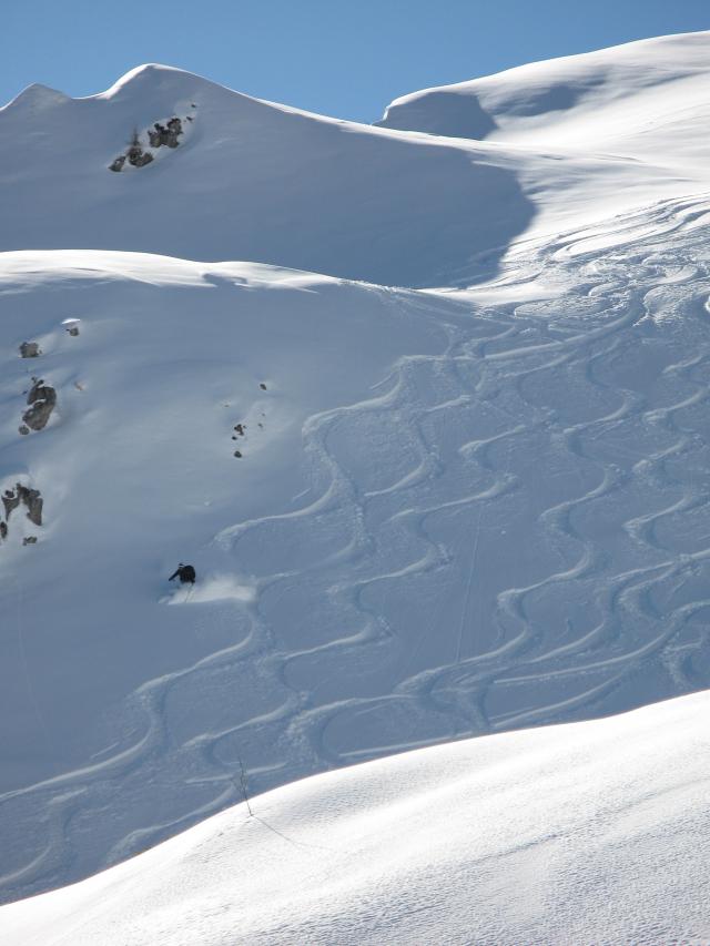 Tourenverhältnisse: Sehr gute Tourenverhältnisse. Rodelbahn noch nicht vereist. Im steilen Wald gute und meist griffige Spur; hier bereits sehr schöne pulvrige Bedingungen. Oben dann feiner Pulver, heute noch einige unverspurte Abschnitte, jetzt aber wohl alles schon recht verspurt. Recht gut besuchte Tour.