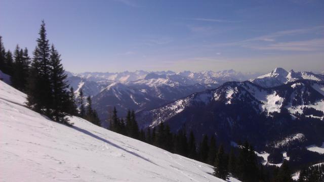 Straße zur Bergwachthütte aper. Ansonsten beste Verhältnisse. Mauskniehohe Pulverauflage auf Harsch. Selbst bei der Abfahrt um 13 Uhr immer noch hart, daher etwas ruppig. Nur in der direkten Sonne recht guter Firn. Tolles Wetter, nur oben leider frischer Wind.