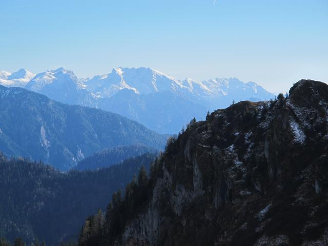 Tourenverhältnisse: In den schattigen Passagen oft ein bisschen schmierig, aber kein tiefer Batz. Überwiegend gute und trockene Verhältnisse. Nordseiten waren ab ca. 1500 m ganz leicht angezuckert. Die Berchtesgadener Alpen im Hintergrund waren dagegen richtig weiß. Wetter: ab Ruhpolding Hochnebelfrei im alpenvorland hat sich die nebeldecke dagegen den ganzen Tag nicht aufgelöst. Am Gröhrkopf also sonnig und warm.