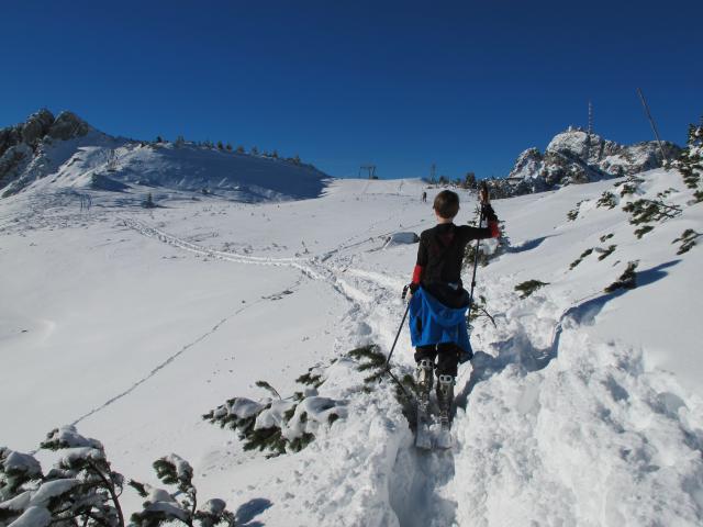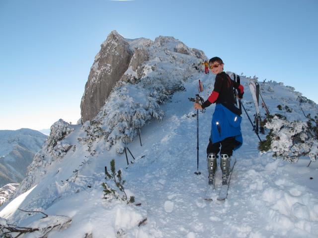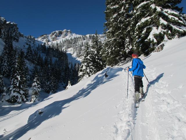 Tourenverhältnisse: Für die Jahreszeit und die erste Skitour ganz gut. Steinkontakt ist jedoch immer mal drin. Unten hat es 30 bis 40 cm, oben ca. 60 cm Schnee. Auch in der Latschzone ist noch vorsicht geboten, jedoch kommt man mit etwas umsicht ganz gut durch. Es gingen einige schöne Schwünge her, aber es darf ruhig noch einmal kräftig draufschneien. Traumhaftes Wetter. Bei Bayrischzell -8 Grad, oben jedoch richtig schön warm.Wir haben die alten Ski genommen, das finde ich - auch wenn es schon ganz gut geht - immer noch die richtige Wahl.