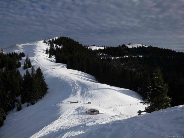 Tourenverhältnisse: Die geringe Neuschneeauflage von letzter Nacht hat die Piste griffig gemacht, angenehm im Aufstieg und bei der Abfahrt. Start mit Skiern direkt an der Talstation, kein Tragen notwendig.