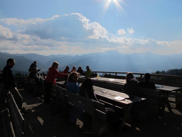 Tourenverhältnisse: Wir sind über den sog. Bayernweg aufgestiegen und über den Winterweg wieder runter. Hier alles trocken und nicht batzig. Schnee gibt es hier nur noch auf der Gipfelwiese neben dem Weg. Das Wetter war heute nicht mehr ganz so strahlend schön, heiter bis wolkig. Das Gasthaus hat noch bis Ende November geöffnet und war gut besucht, aber man hat auch noch locker einen Platz bekommen.