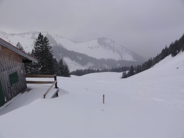 Tourenverhältnisse: Schnee sehr gut viel Powder; Wetter viele wolken Schneefall auf der Brecherspitz viel Wind