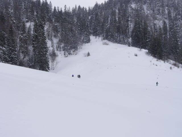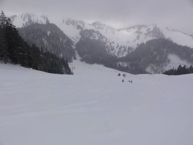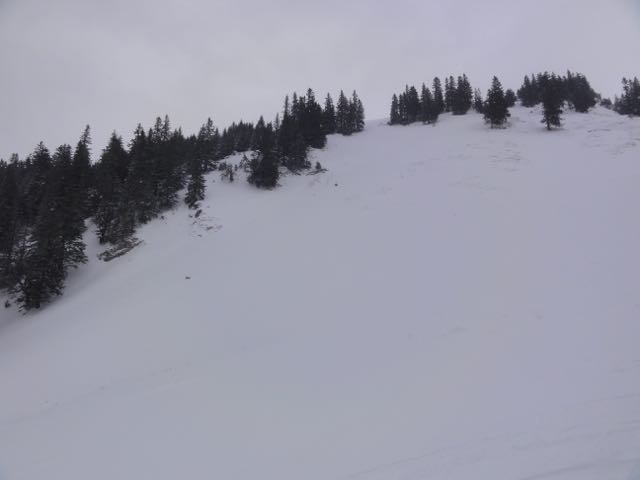 Gefahreneinschätzung: Aufstieg Firstalm Brecherspitze verspurter West Hang keine Gefahrenstellen wahrgenommen. Abfahrt Richtung Nord West Obere Freudenreich Alm im oberen Bereich teilweise Windgangeln/ abgeblasen. Die Abfahrt zur oberen Freudenreichalm war heute Mittag Luv Seite. Wind kann aus Nord/ Nord west. Auf der "Piste" keine gefahren gesehen. Abseitz bei Gelände Gruppierungen war teilweise viel Triebschnee erkennbar.