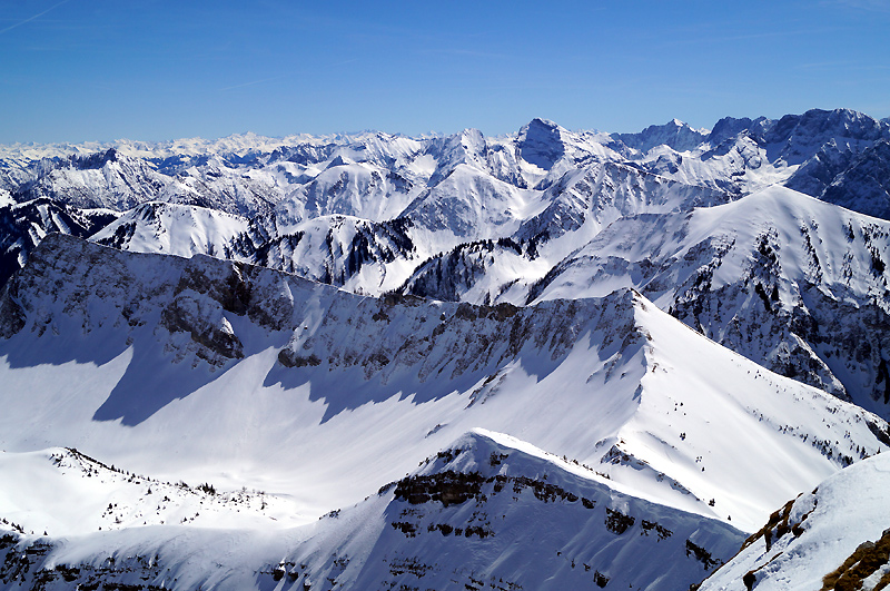 Tourenverhältnisse: vom Parkplatz weg gings heute Morgen noch auf einer dünnen Schneeschicht mit Fellen los. Bis ca. 1150 m hinauf musste man ab und zu für ein paar Meter abschnallen, danach durchgehende Schneedecke. Die Latschenzone vor dem Gipfelhang ist sehr gut eingeschneit. Die warmen Temperaturen haben der Forststraße allerdings im Tagesverlauf arg zugesetzt. Wer seine neuen Skier nicht schrotten möchte, der muss ab eben 1150 m die Schlappen nach unten tragen. Mit Steinski gehts noch ein paar Hm weiter hinab:-)