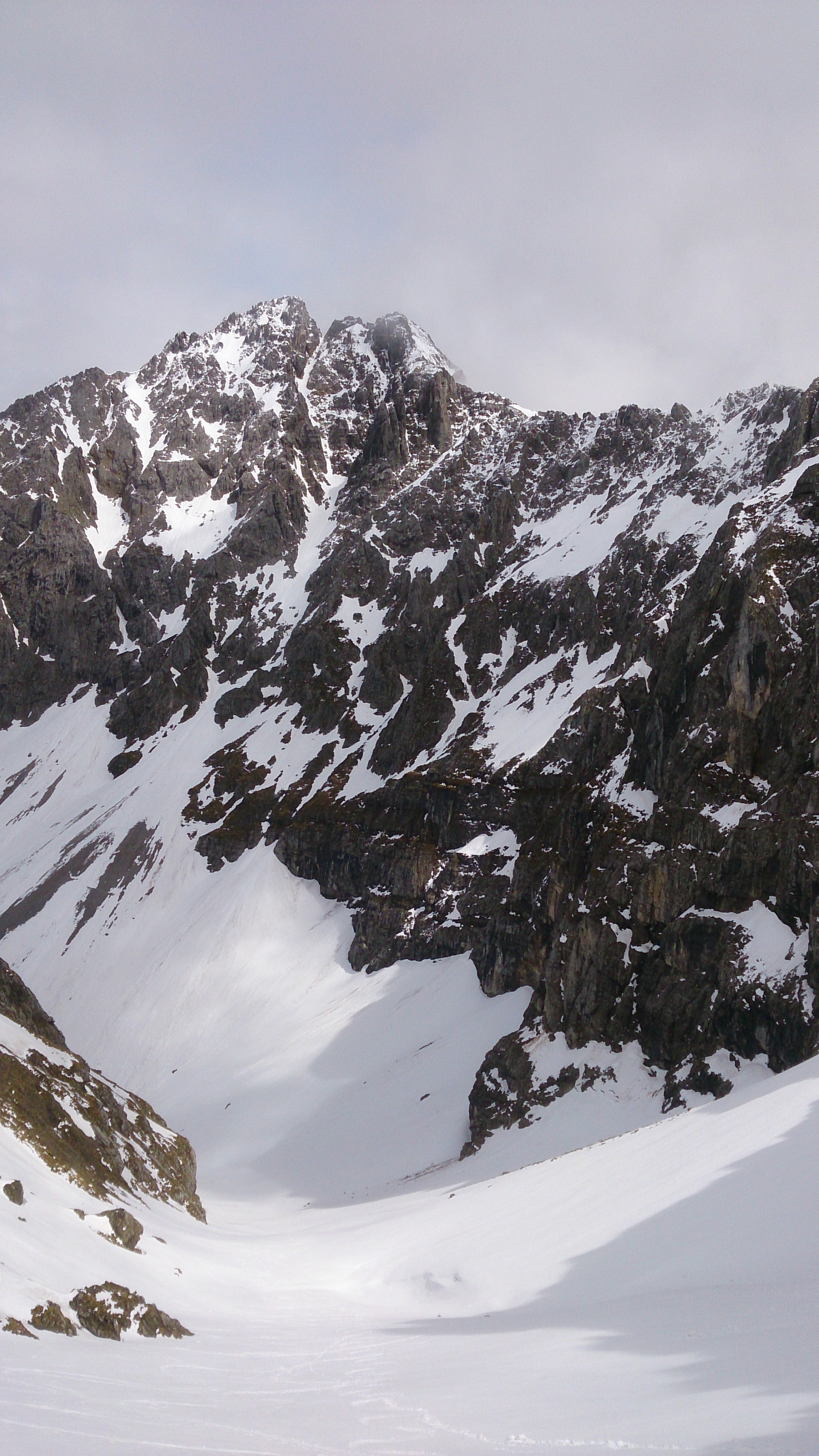 Tourenverhältnisse: nasser Schnee, wie nicht anders zu erwarten; lässt sich aber schon fahren - oberhalb ca. 2.000 m ziemlich feuchter Neuschnee
