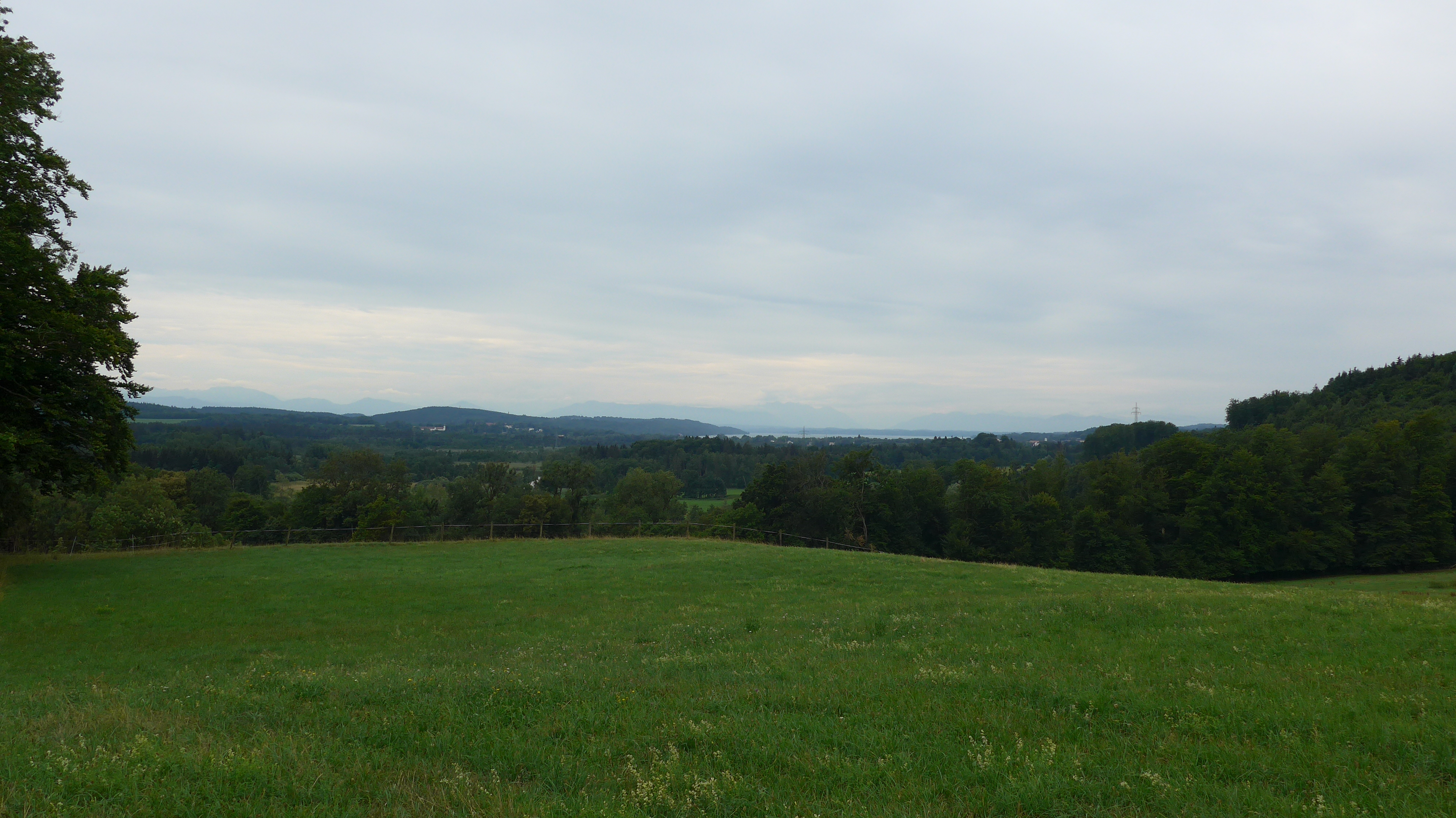 kurz vor Leutstetten mit Blick auf den Starnberger See am Horizont