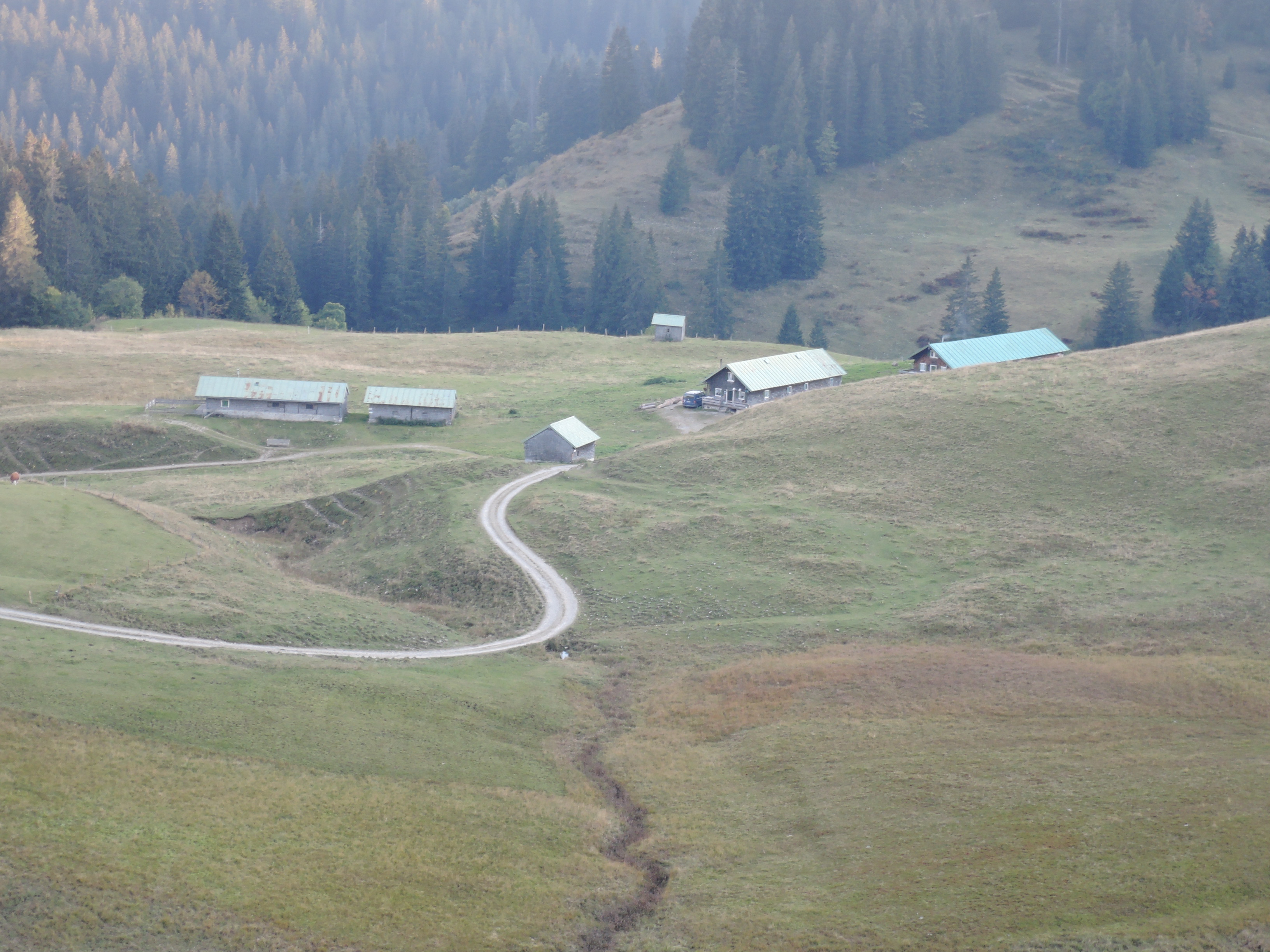 Tourenverhältnisse: Heute einem Freund versprochen ihm ein bisschen zu helfen die Hütte für den Winter herzurichten. Statt über Kreuth und Schwarzentenn heute mal von der anderen Seite von Hohenburg die Forststraße raufgefahren. Diese ist in einem sehr guten Zustand und nicht zu steil, also ideal zum Mountainbiken. Leider bin ich dann falsch abgezweigt und statt am Sattel hinüber zu den Rauhalmen auf dem Weg zur Lenggrieser Hütte gelandet. Zurück lohnt nicht also das Radl den Steig hinauf zum Seekarkreuz geschoben und auf der anderen Seite zu den Almen abgefahren. Gut für manche ist das eine normale Radlstrecke, für mich wars ein Ausflug auf den Gipfel mit längerer Schiebeeinlage. Schön wars trotzdem.