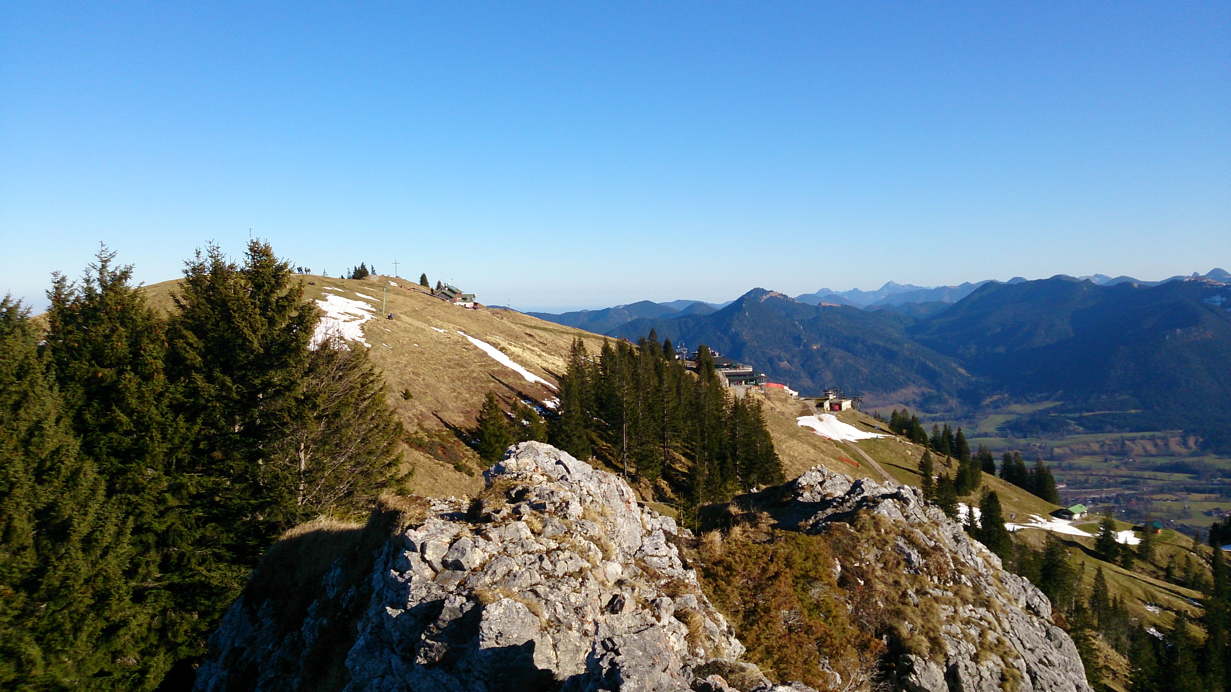 Sonstiges: Heute ein erneuter Versuch, Bergwanderung mit Ski zu kombinieren. Von Obergries ging es in praktisch völliger Einsamkeit über die Route an der Logham-Alm vorbei zum Schrödelstein-Kamm. Erst hier traf ich auf andere Berggeher, und zum Kontrast auch gleich extrem viele. Die Hütten am Brauneck waren offen und scheinbar auch gut voll, bei dem Auftrieb macht die Bergbahn auch ohne Schnee ein gutes Geschäft.