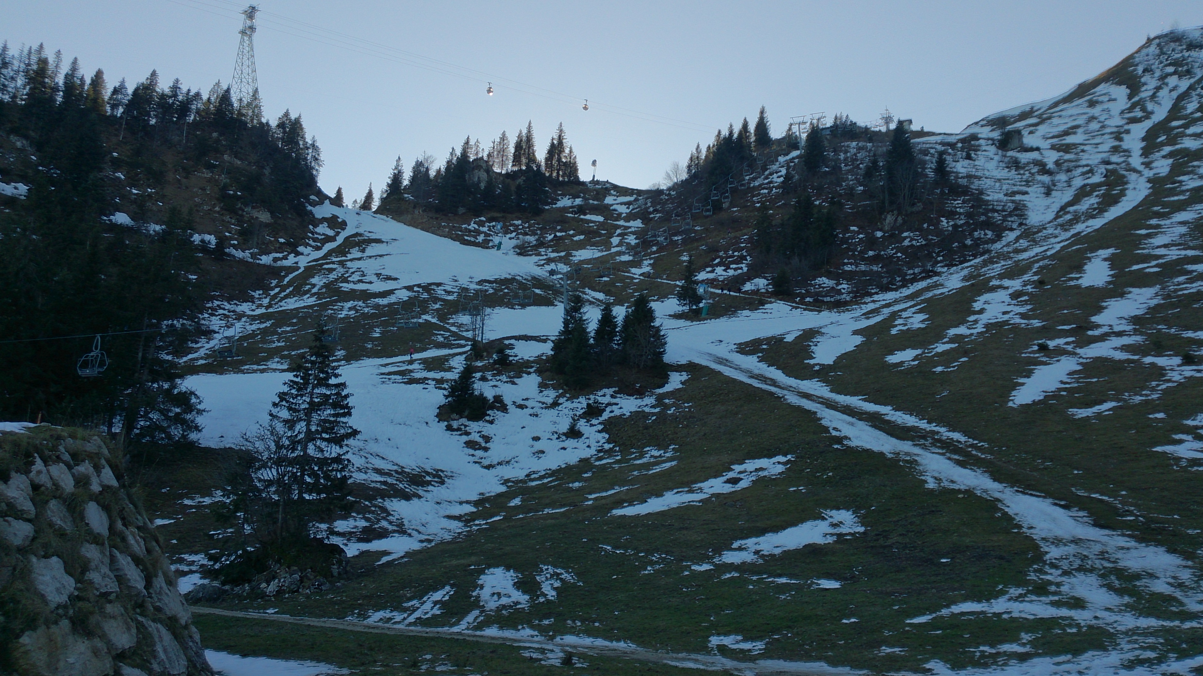 Tourenverhältnisse: sehr wenig Schnee auch auf der beschneiten Piste, s.u.