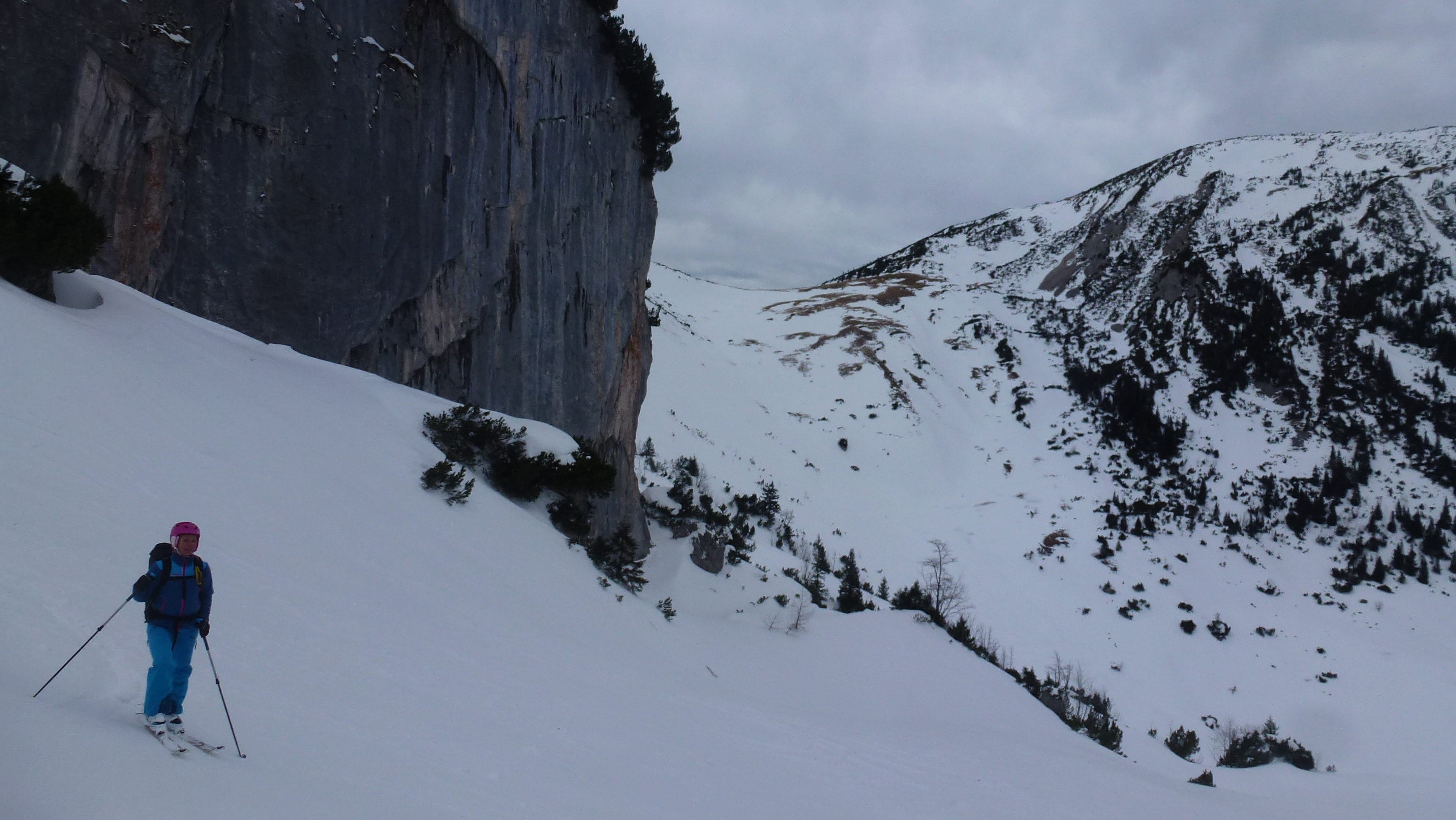 Prognose: Noch ging es im Aufstieg ohne Harscheisen. Eigentlich liegt noch genug Schnee, den optimalen Zeitpunkt (Erwärmung) für die passende Schneequalität zu finden ist die Gretchen Frage.