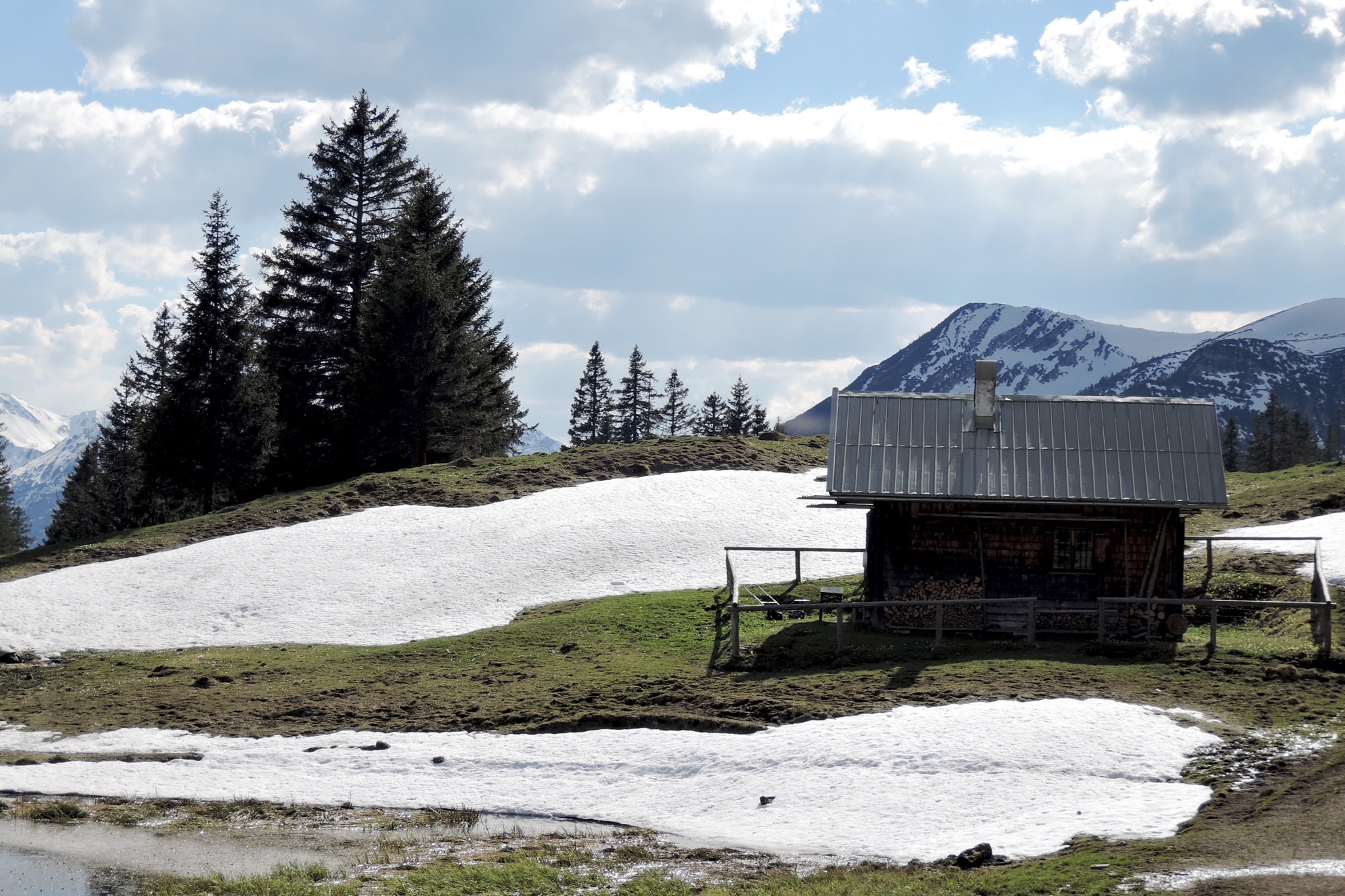 Tourenverhältnisse: Sonnig und warm. Forststrasse staubtrocken. An der Enningalm dann Schneereste, der Pfad zur Rotmoosalm unterm Schnee. Im Sulzgraben-/Lahnenwiesgraben dann ziemlich oft sumpfig, aber gut fahrbar. Wenig los, da die Enningalm noch zu hat.