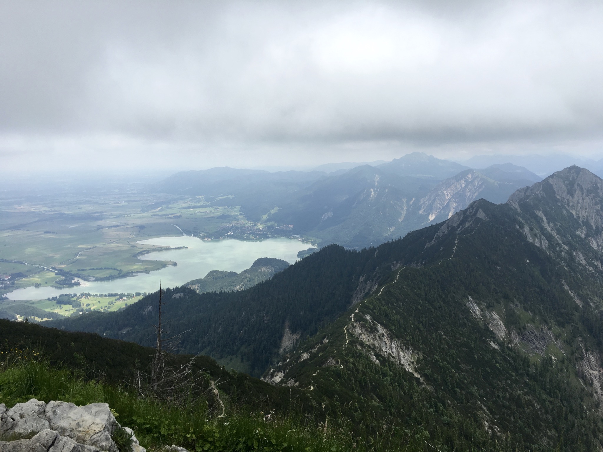 Sonstiges: vom Schwimmbad in Ohlstadt (650m) zur Kirche in Ohlstadt zum kleinen Supermarkt. Von dort zum Tennis Club und dort links Richtung SW auf den Boschetrundweg. Nach der Boschetkapelle rechts Richtung N nach Ohlstadt. Richtung NW zur Heubergstrasse, dort links Richtung SW und auf der Forststrasse an der Loisach entlang nach Eschenlohe. Dort unmittelbar nach der Brücke links auf den Damm und zur Walchenseestrasse. Auf dieser links Richtung Heimgarten. Am Abzweig nicht zur Eschenlaine hinab, sondern weiter auf der Strasse. Bei Wengwies geradeaus auf den kurz steilen, aber heuer instand gesetzten, Forstweg. Auf 820m den Abzweig rechts Richtung O hinauf. Nach einer kurzen Abfahrt mündet der Weg auf der Schotterstrasse. Hier nach links und ab jetzt meist bergauf Richtung Heimgarten. An der Wankhütte (1370m) den Abzweig rechts Richtung “Heimgarten”. Dem schmalen Fahrweg folgt man Richtung O in meist mäßiger Steigung bis auf ca. 1480m. An einem markanten Baum steilt sich der Weg zusehends auf und so geht es Richtung ONO bis auf 1700m teils sehr steil und betoniert den Grat entlang hinauf. Nun dreht der Weg auf Richtung SSO und nurmehr mäßig steil hat man die Heimgartenhütte(1780m) schnell erreicht. Auf den Heimgarten (1790m) sind es jetzt nur noch einige Schritte. Die Aussicht ist genial!