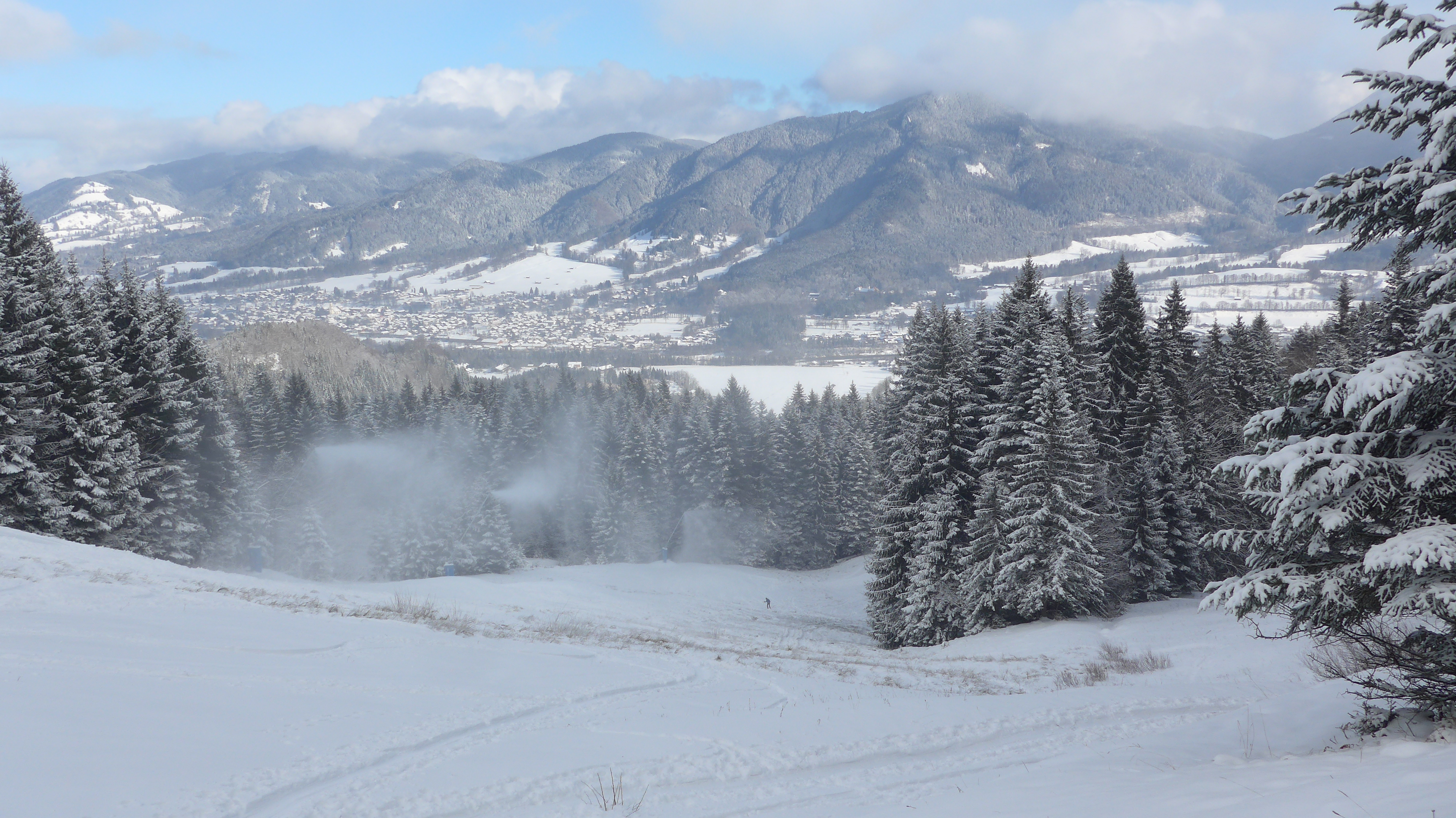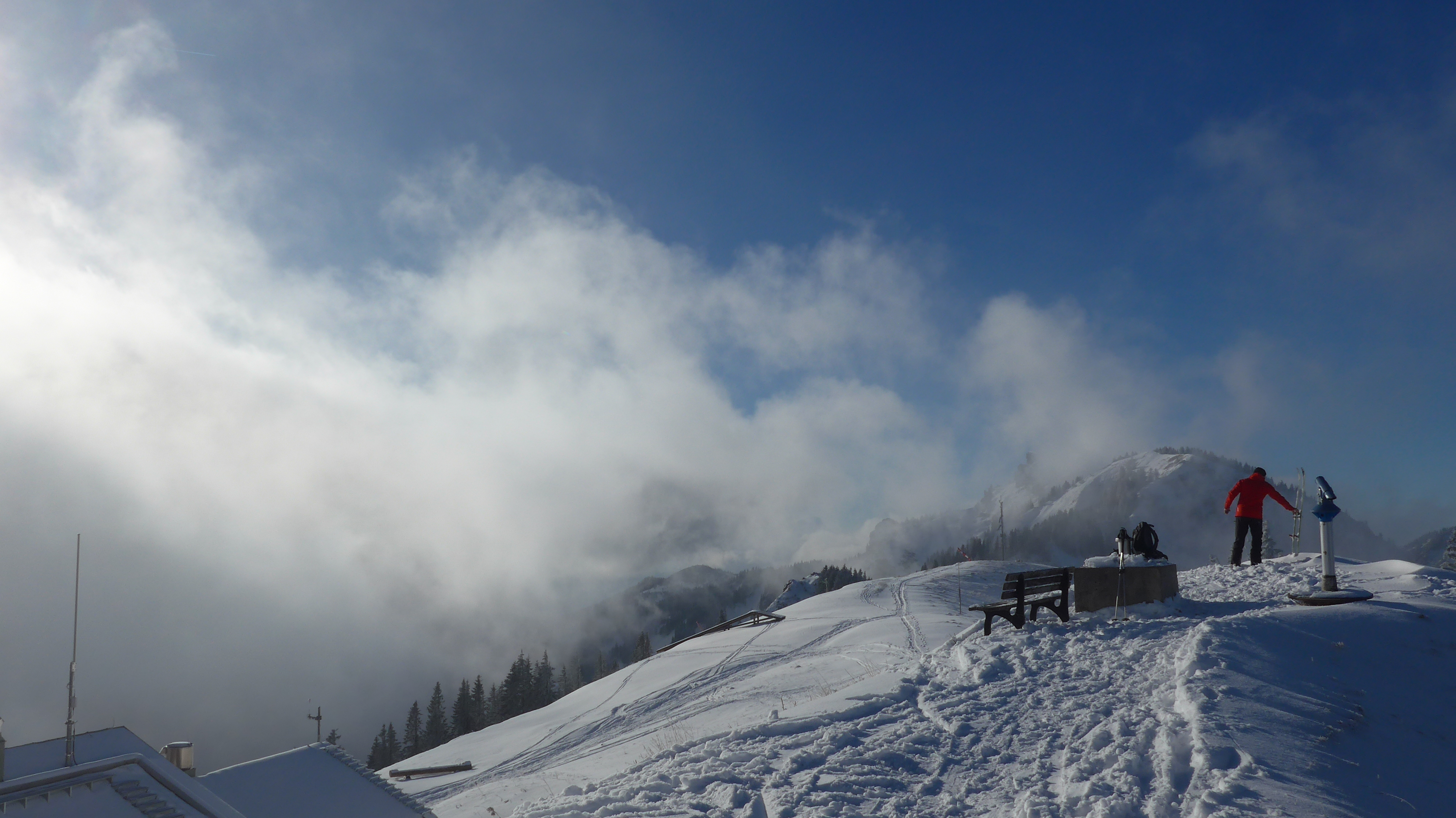 Überall im Umkreis feinster Sonnenschein, alle Berge frei - nur das Brauneck nicht - war im Nebel! ?? Von der massiven Beschneiung?
